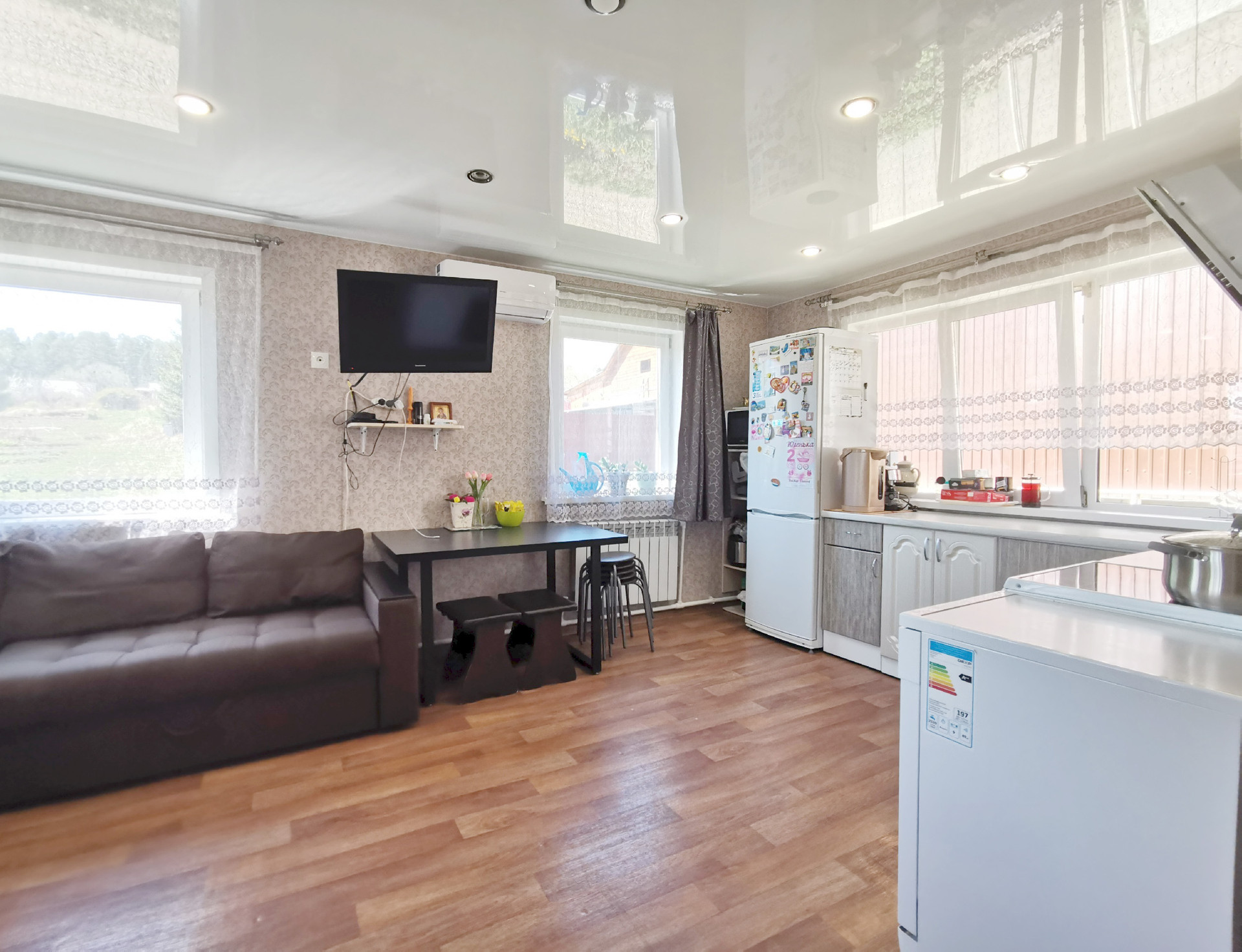 Из мебели остается кухонный гарнитур с вытяжкой, шкаф, телевизор. Остальное по договоренности. Установлен кондиционер.