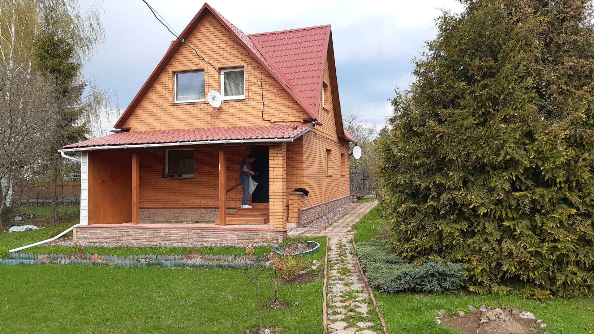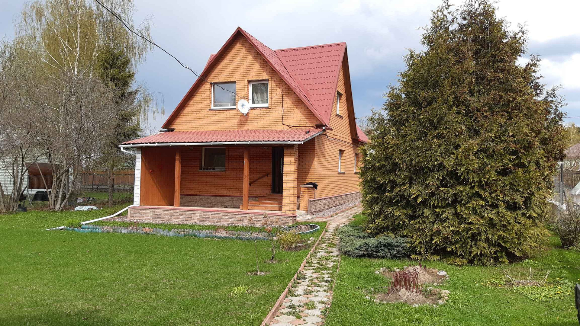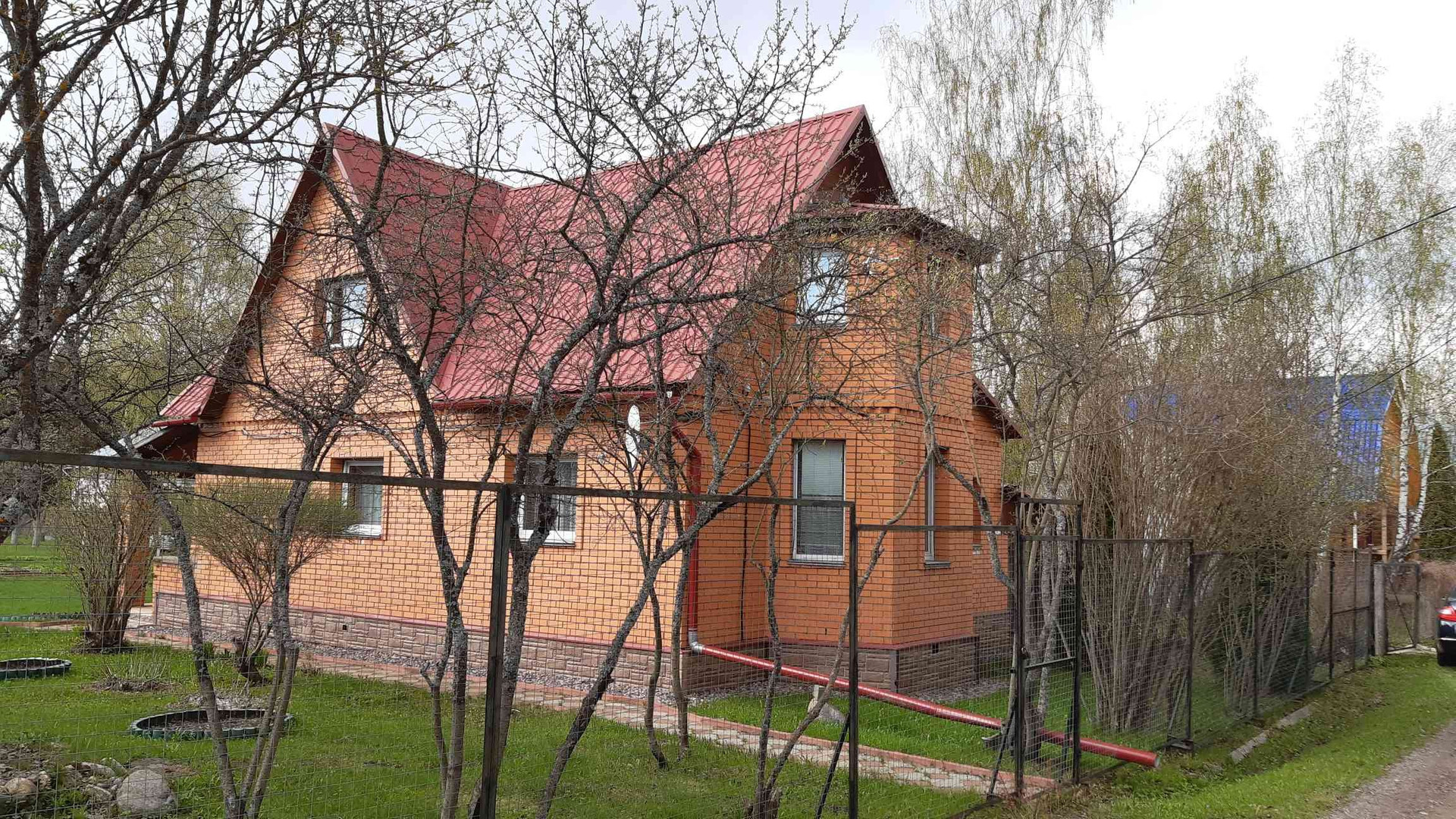 Продается отличный дом 100 м2 в СНТ Огонёк недалеко от деревни Соколово. Дом основа брус 15 на 15 см, обложен снаружи полноценным, не декоративным кирпичем, с внутренним утеплением. На первом этаже расположены кухня, большая центральная комната, две спальни и санузел. На втором расположены также утепленные 3 раздельные спальные комнаты с балконом и шкафами. Участок ровной формы 8 соток, ухожен с садовыми растениями. Также на участке имеется летний домик. К дому подведены электричество, сезонное водоснабжение и канализация. Электричество трехфазное, вода поступает из собственной скважины СНТ, септик объемом 4 м3. В доме электрическое отопление. Спутниковое телевидение, мебель остается по желанию покупателя.Территория круглосуточно охраняется, въезд через шлагбаум. В шаговой доступности лесной живописный пруд, Истринское водохранилище в соседней деревне Трусово, там расположен оборудованый пляж Трусово, где можно купаться, кататься на лодках, подушках, а также на водных лыжах. Развитая инфраструктура: сетевые магазины, банки, рестораны, строительные базы, почта, остановки общественного транспорта. По Пятницкому шоссе расстояние до МКАДа 40 км. Также можно доехать по Новой Риге либо по Ленинградскому шоссе. В 500 метрах расположена автобусная остановка, в 20 минутах езды расположен г. Солнечногорск, где есть: детские сады, школы, банки, больницы, супермаркеты и т.д., В 25 минутах езды г. Зеленоград.