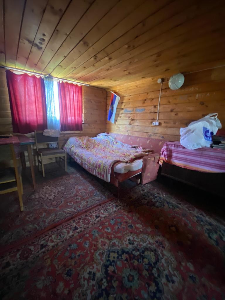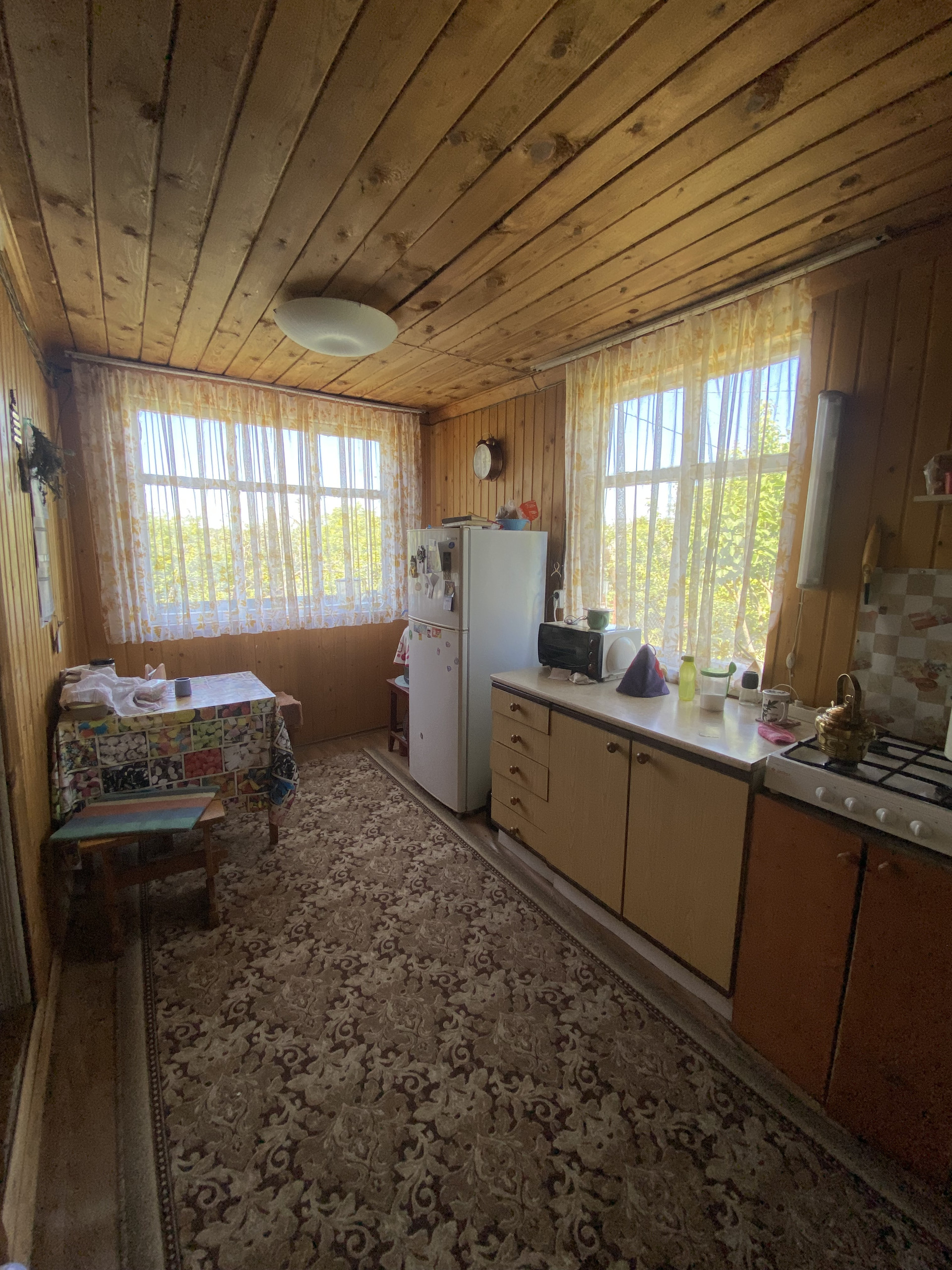 Внутри стены обшиты евровагонкой. Окна деревянные.