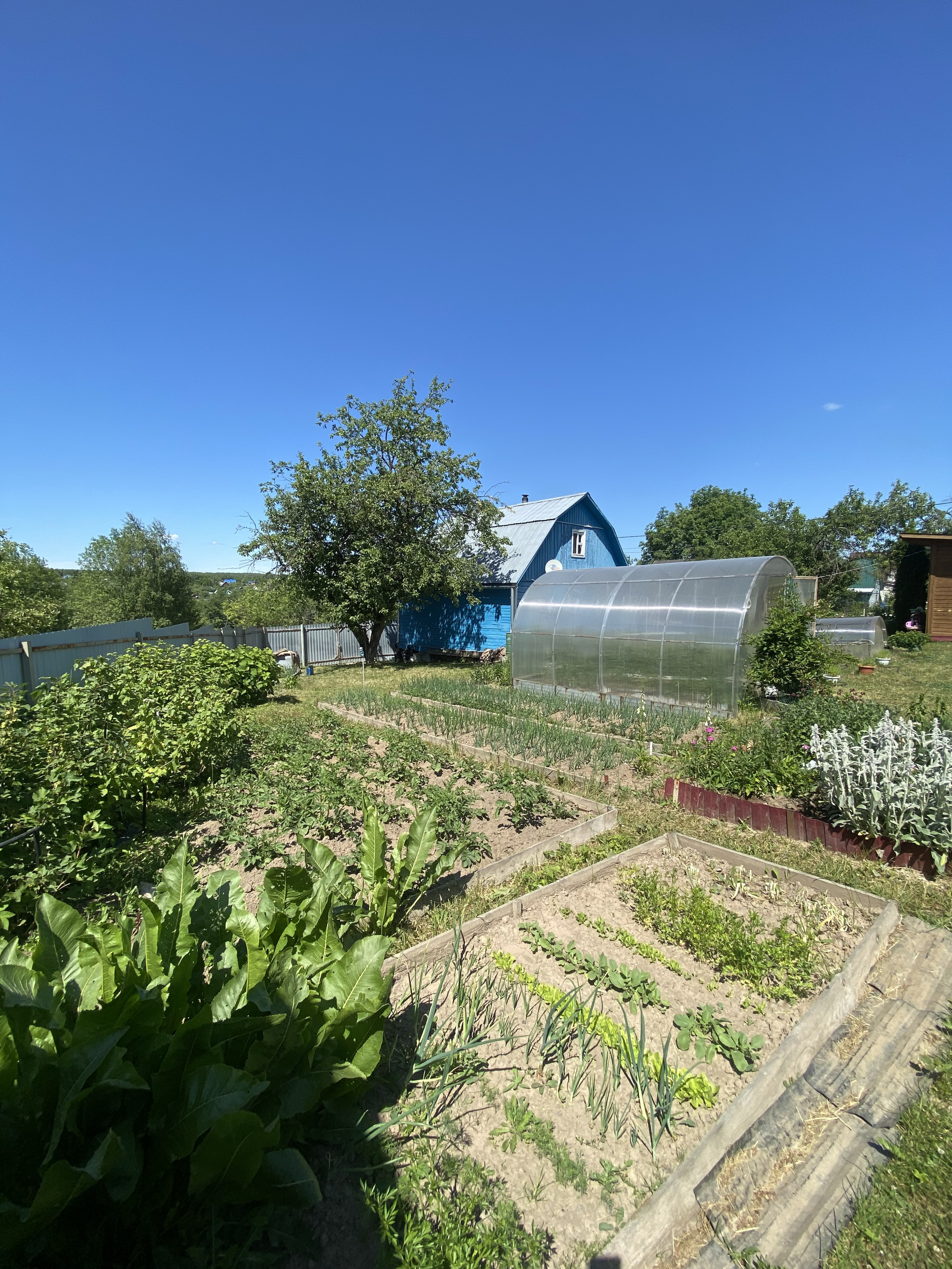 Участок: 2/3 участка заняты под огород (теплицы, грядки, плодовые кустарники и деревья, ягоды), огород в идеальном состоянии, земля обрабатывается ежегодно. 1/3 участка: газон, парковочные места для 2-х автомобилей).