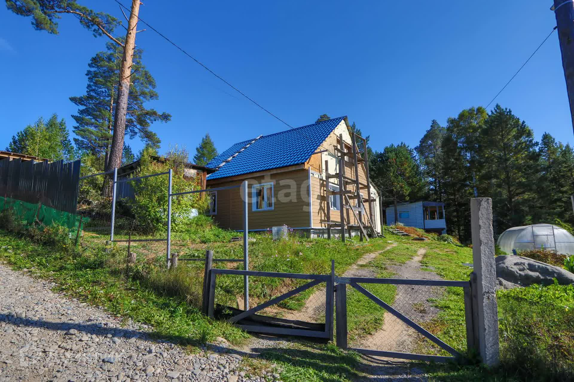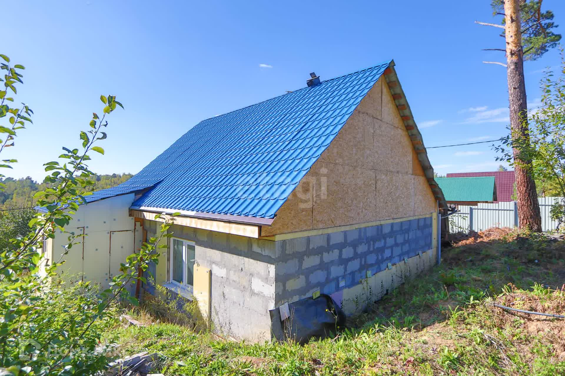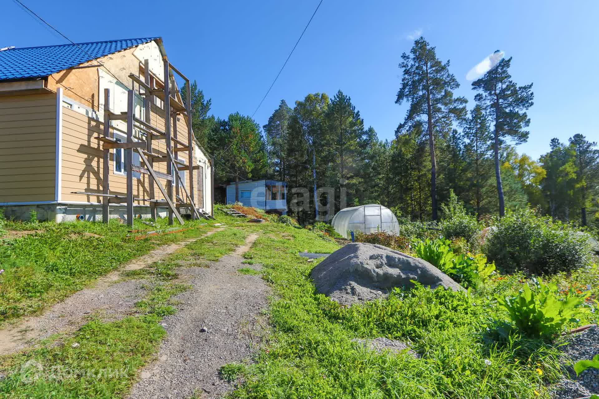 Продается дом из газоблока с участком прямоугольной формы и с летним домиком из сибпанелей.