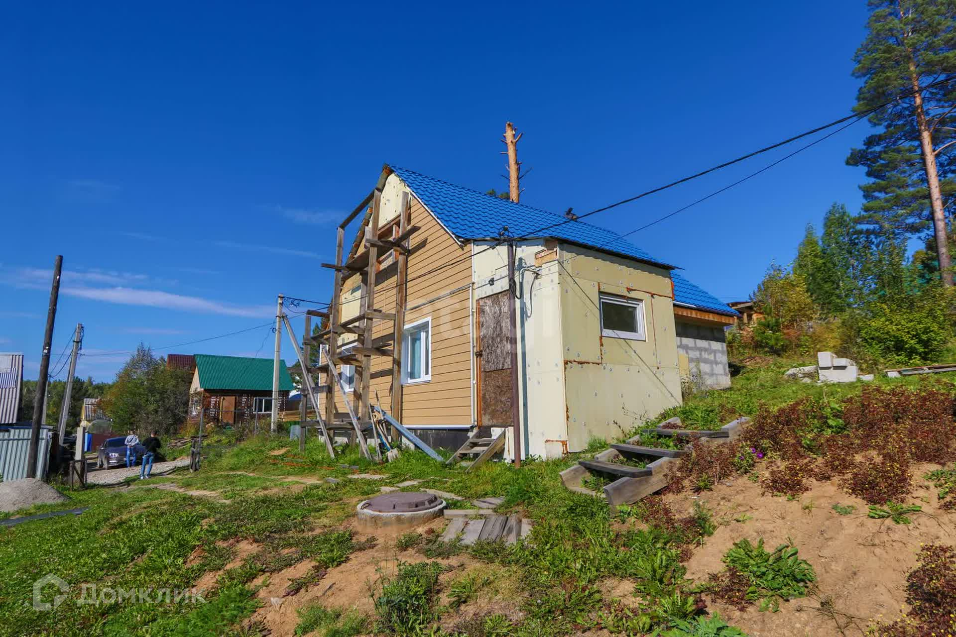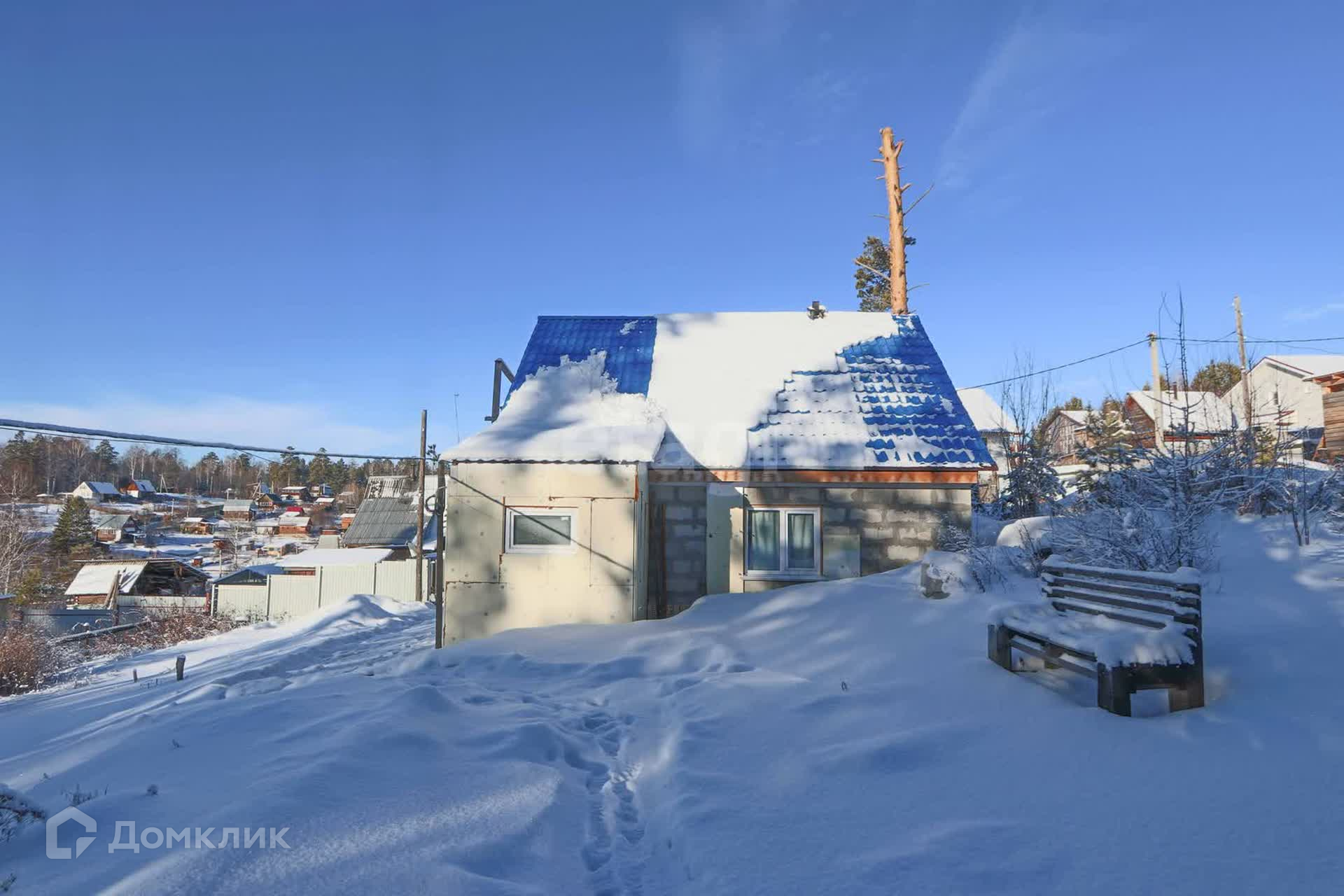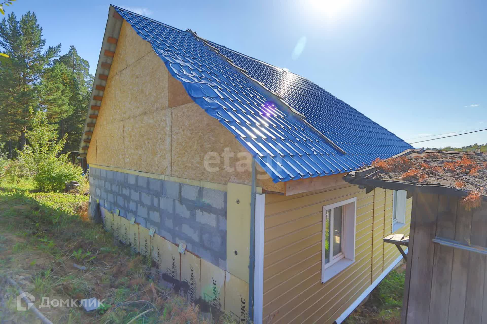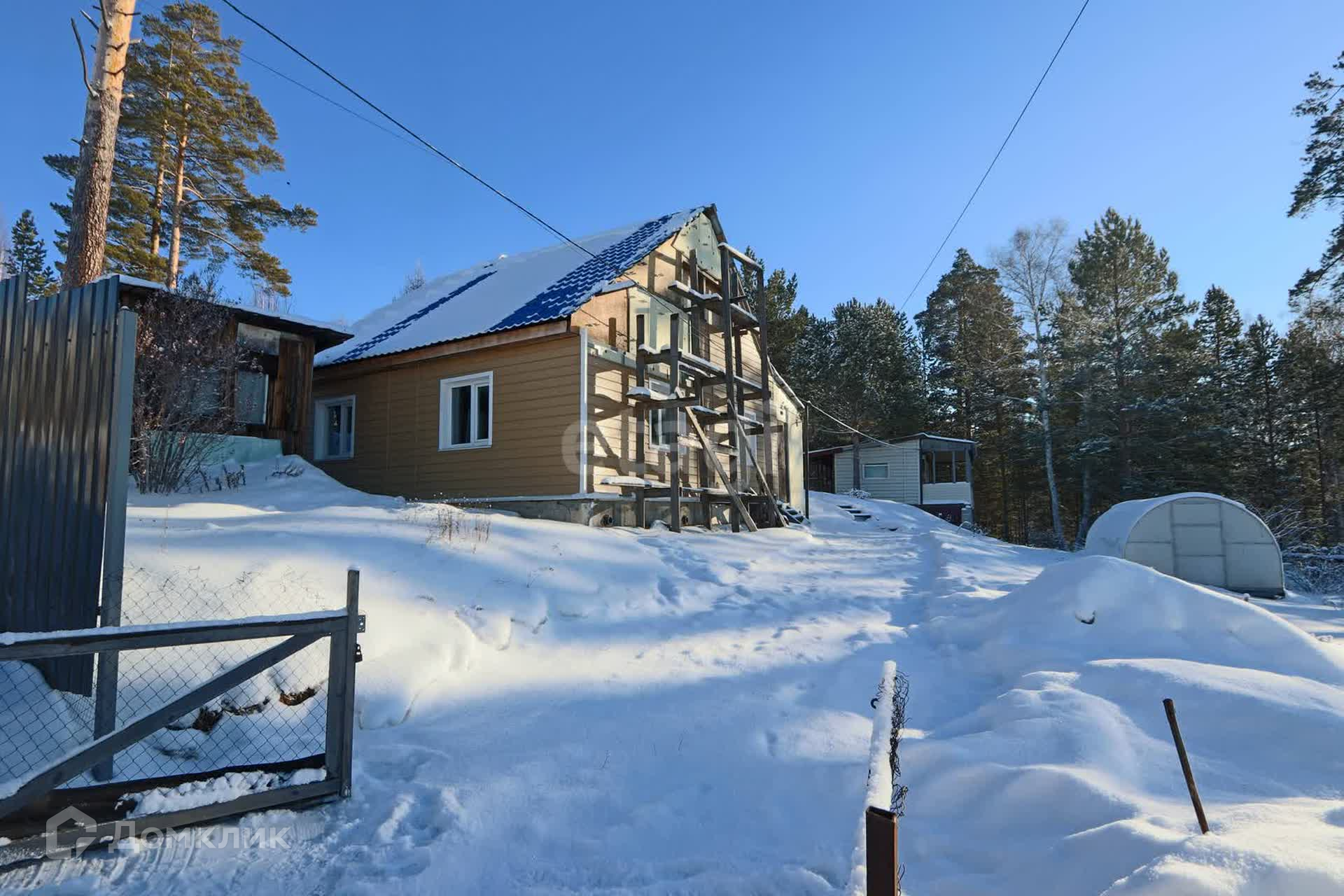 Продается дом из газоблока с участком прямоугольной формы и с летним домиком из сибпанелей.