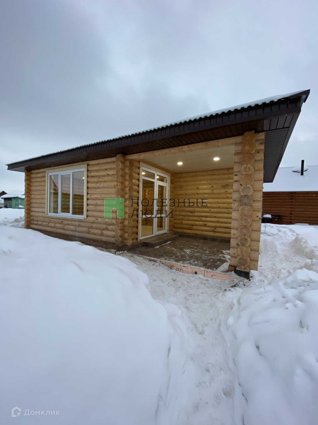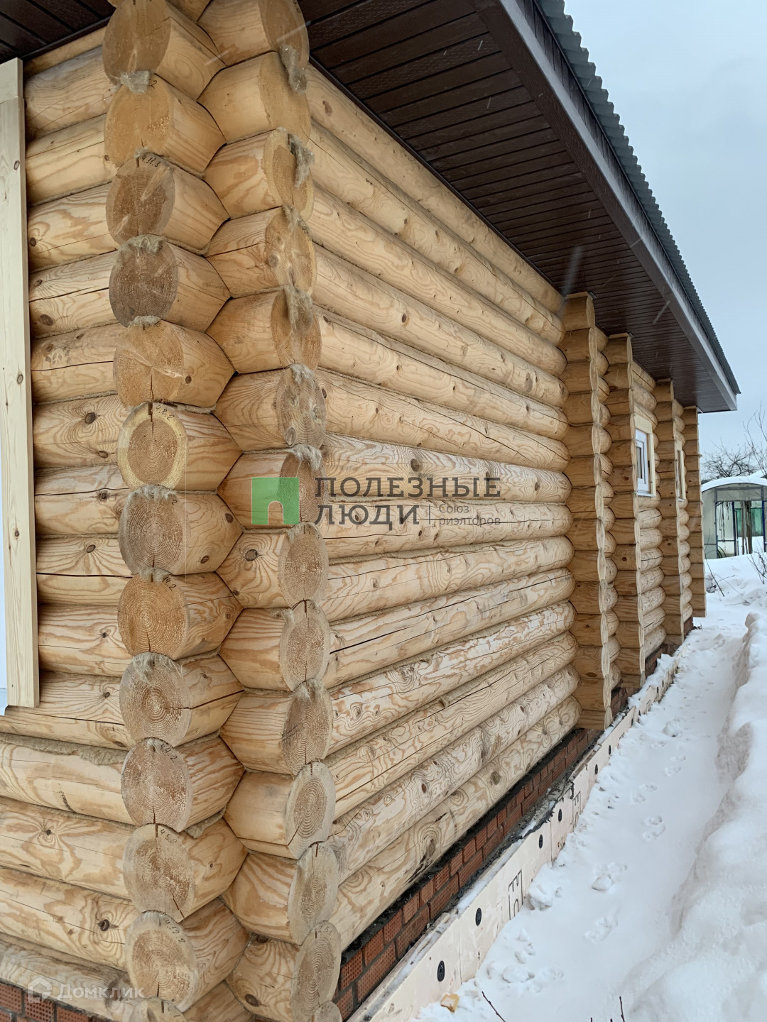 Дом построен из оцилиндрованного бревна, фундамент ленточный.