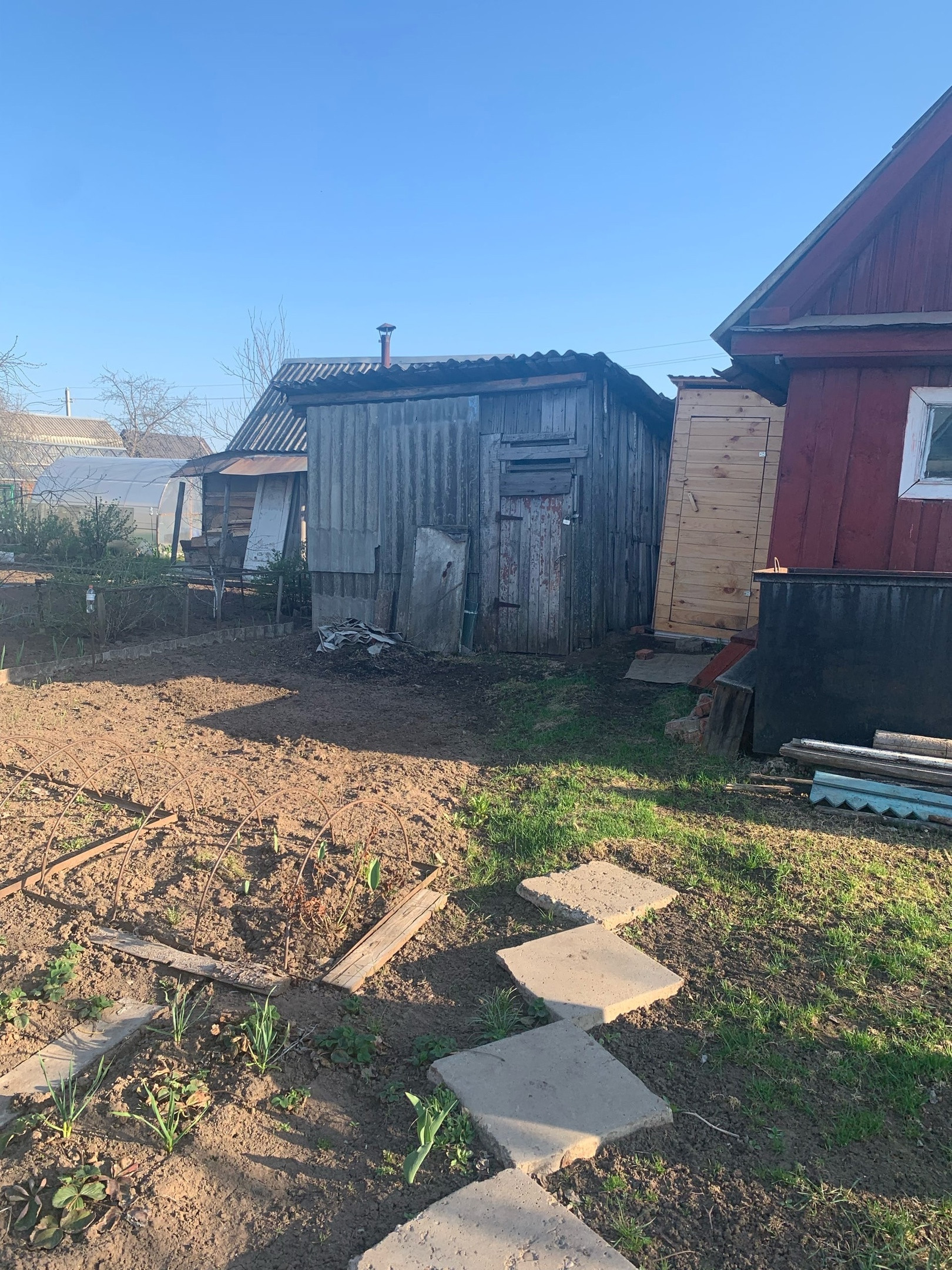 На участке имеются: две теплицы, баня, сарай, дом, беседка, туалет (смонтирован в том году), в доме имеется яма для хранения на зиму, дом обшит сайдингом в 21 году, новая кровля, хорошая печь