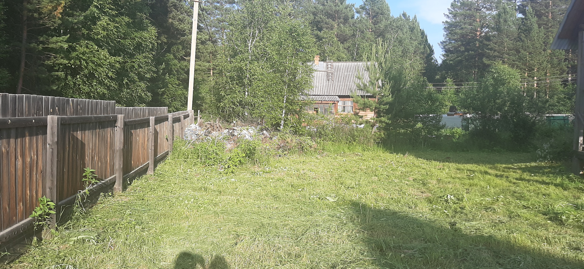 Огромный плюс участка – его расположение. Участок крайний (одна из сторон выходит на лес), поэтому нет ощущения, что соседи со всех сторон.