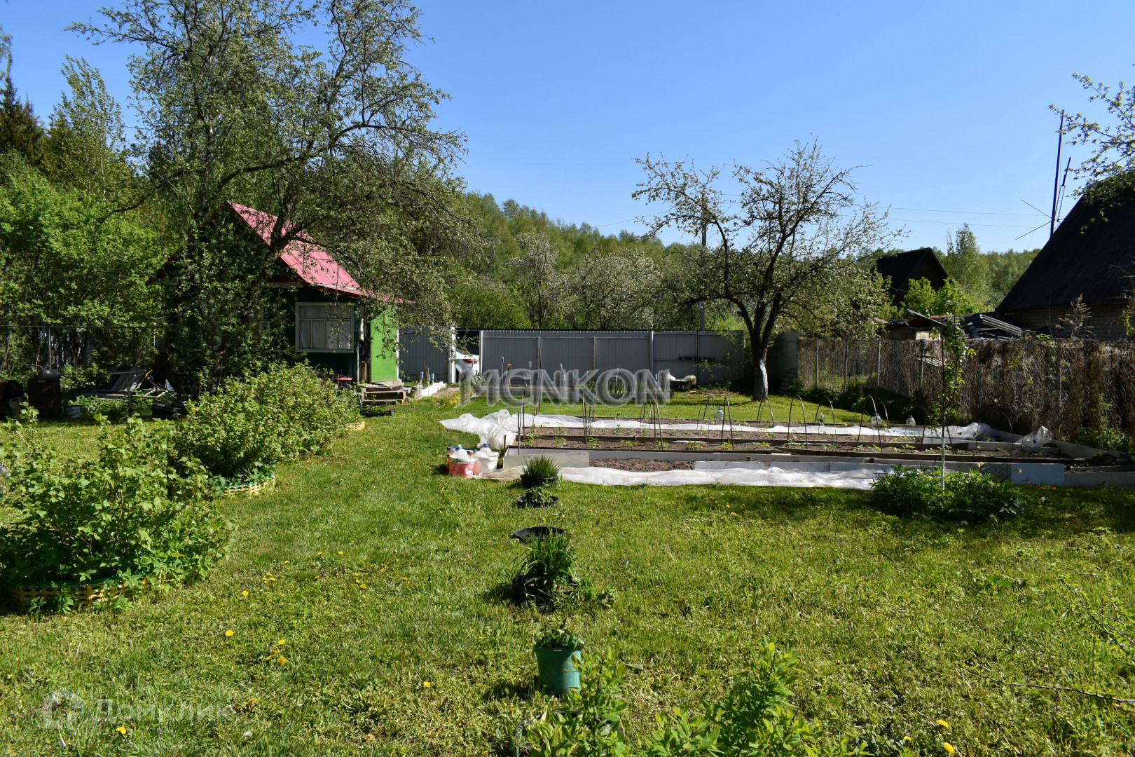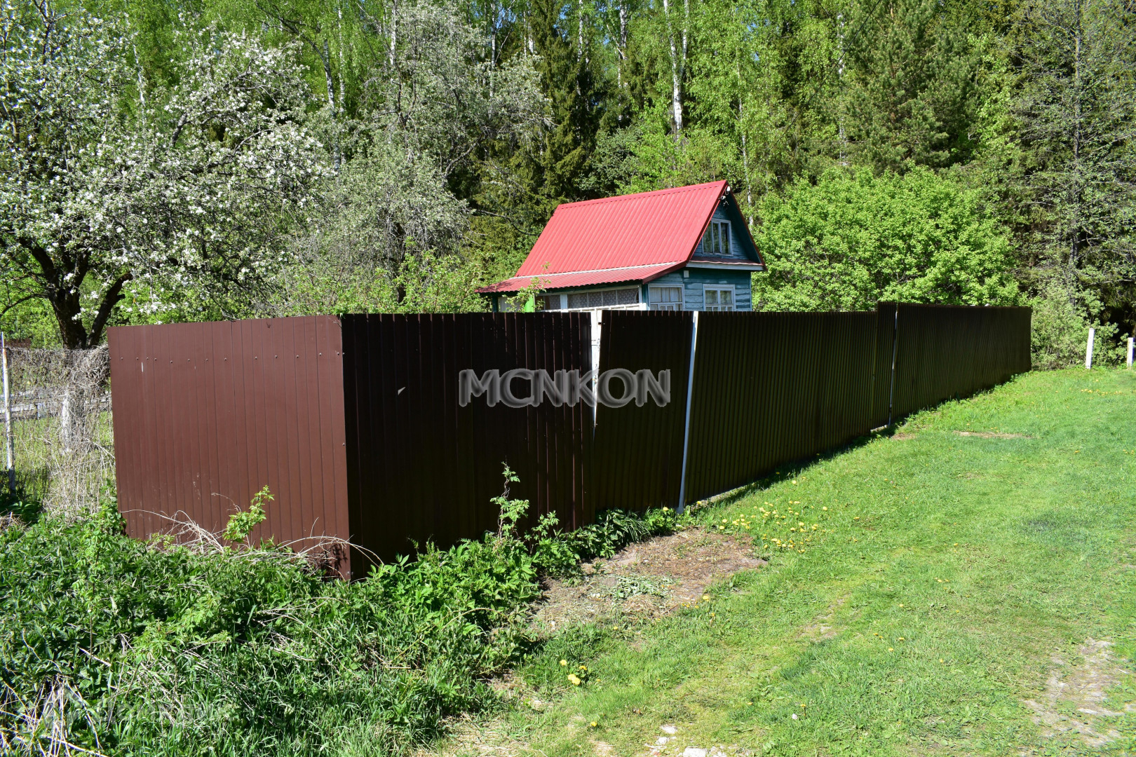 Участок огорожен хорошим забором из профлиста, с воротами и калиткой