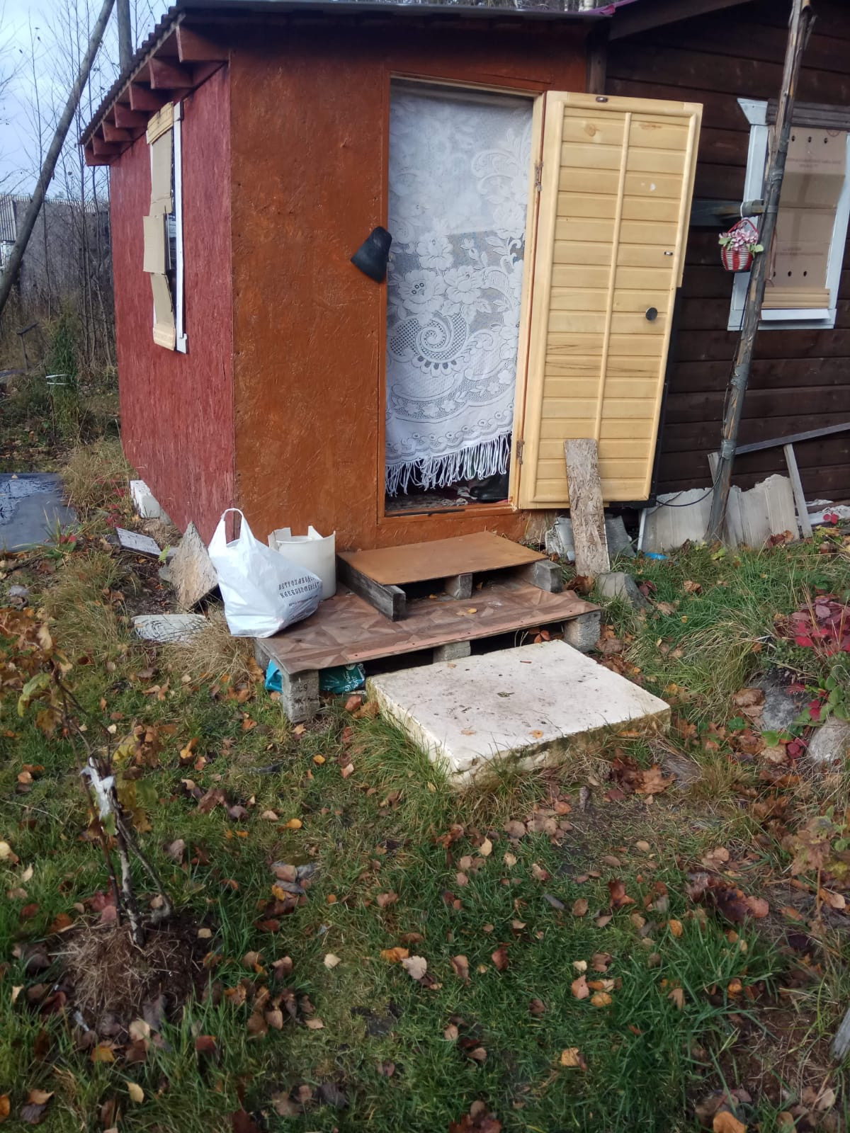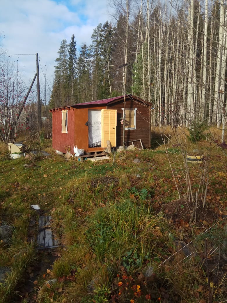 На участке есть старый сарай, а для проживания есть небольшой домик. Электричество проведено. От города примерно 40км. Подъезд до участка хороший. Соседи по границе только с одной стороны, вторые через дорогу, с двух сторон - лес.