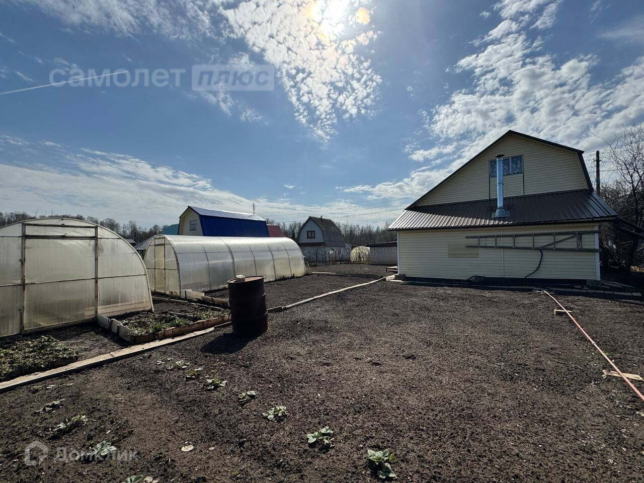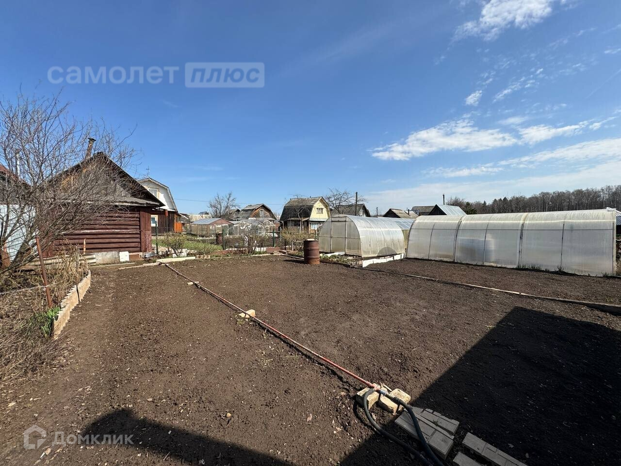 Участок 4 сотки (на участке 2 теплицы, обработанные грядки, готовые к посадкам, выгребная яма и кирпичный гараж с подпольем для солений и хранения инвентаря)