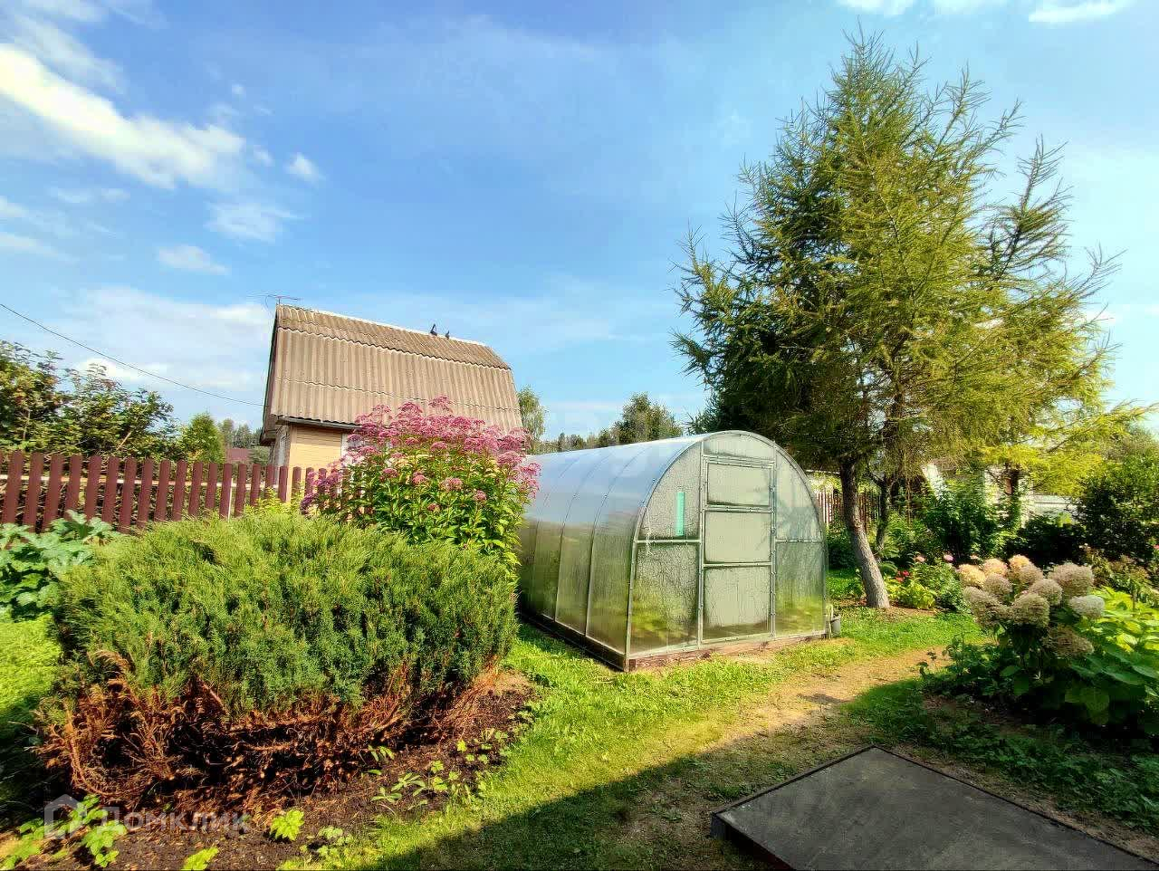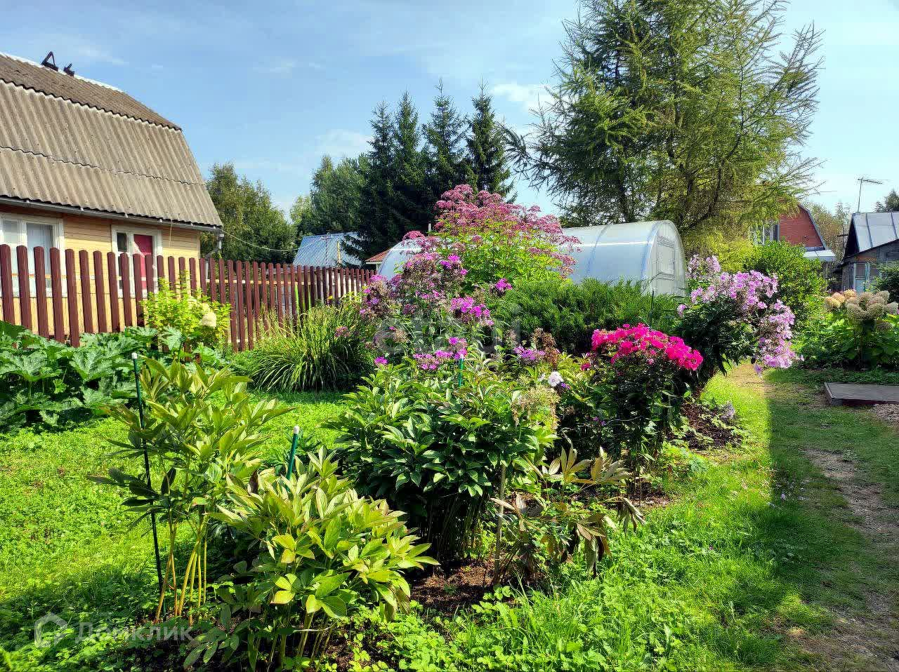 Участок ухоженных, с теплицей, красивыми цветами и вкусными плодово-ягодными деревьями и кустарниками.