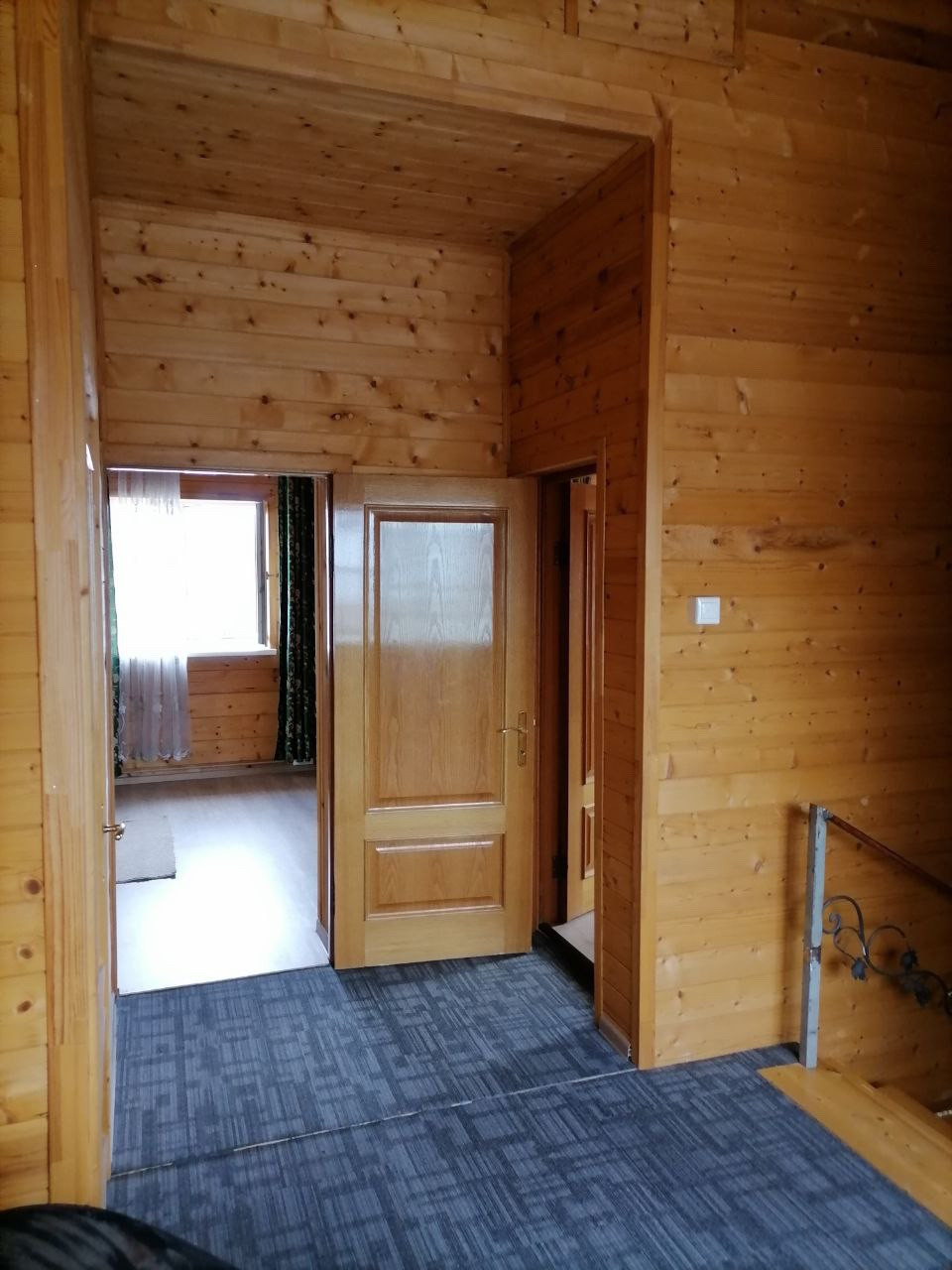1 этаж - прихожая с лестницей на 2й этаж, санузел, кухня-гостиная, комната отдыха;