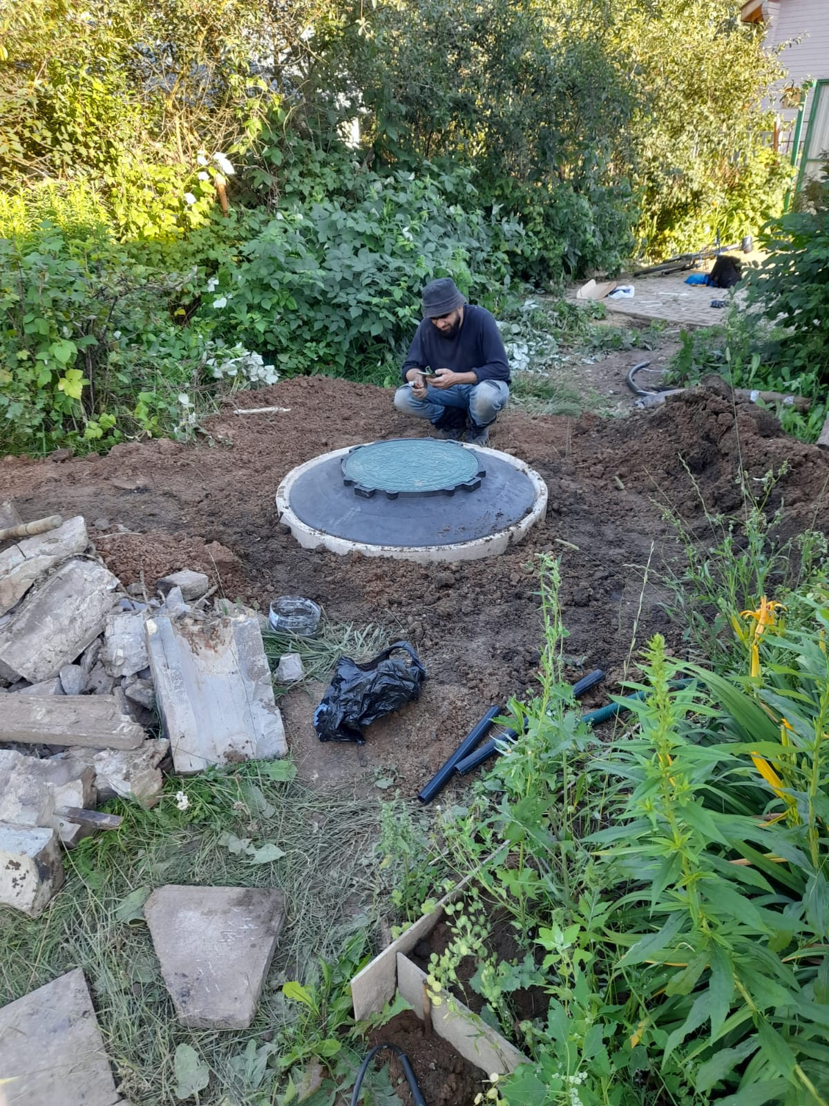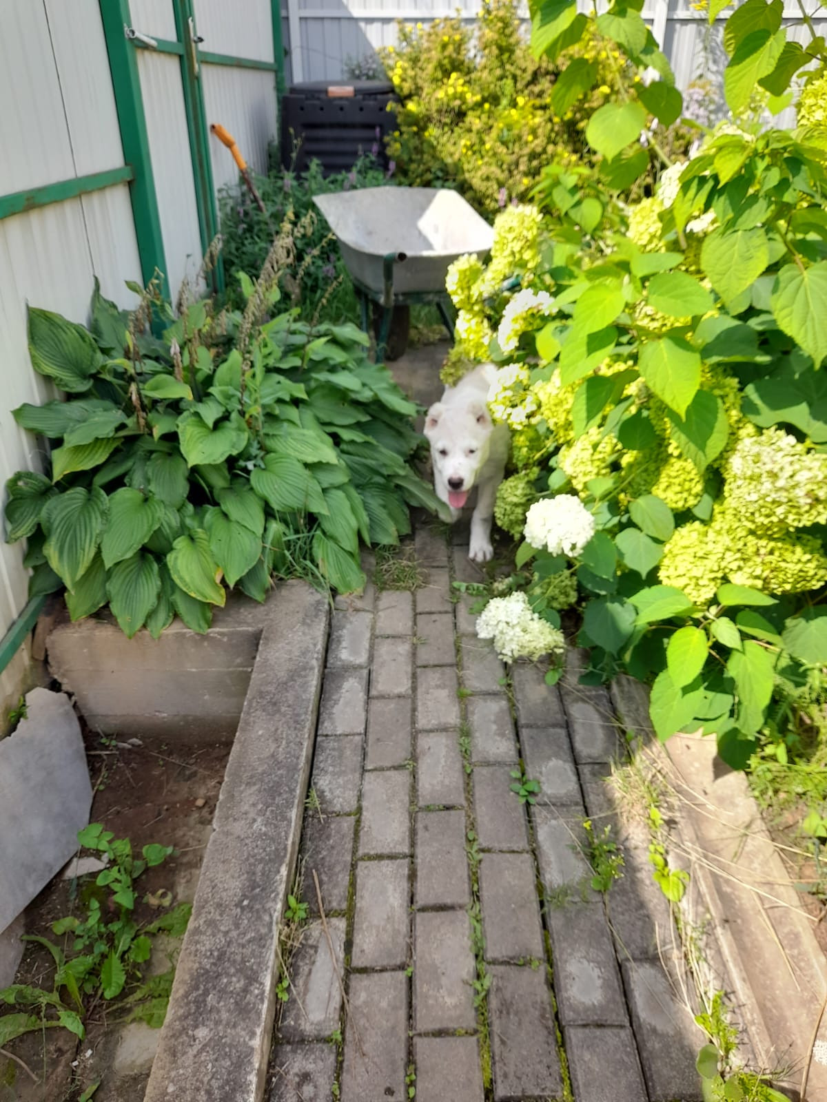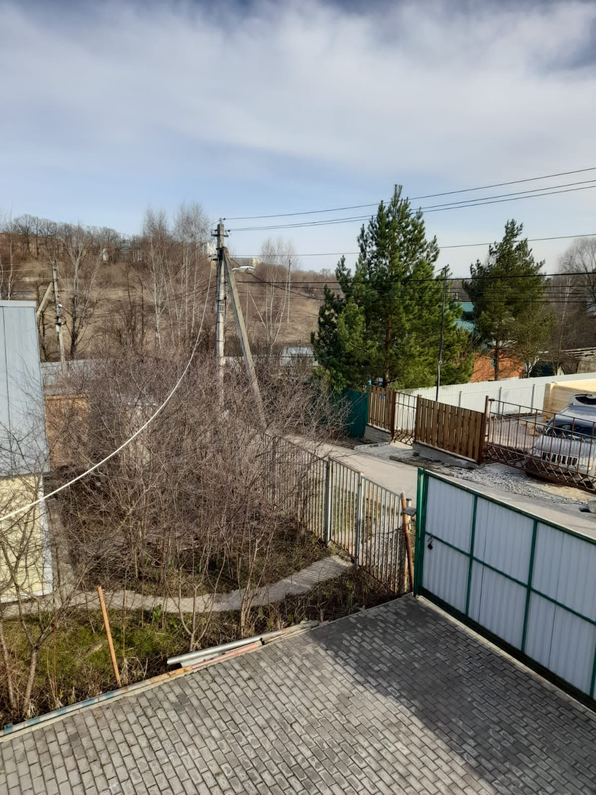 Участок огорожен высоким металлическим забором и раздвижными воротами, парковка во дворе на две машины. Участок ухожен, оборудован фонтанчик, клумбы с цветами, проложены тропинки, газон. На участке посажены туи, вишни, яблони, груши, ягодные кустарники.