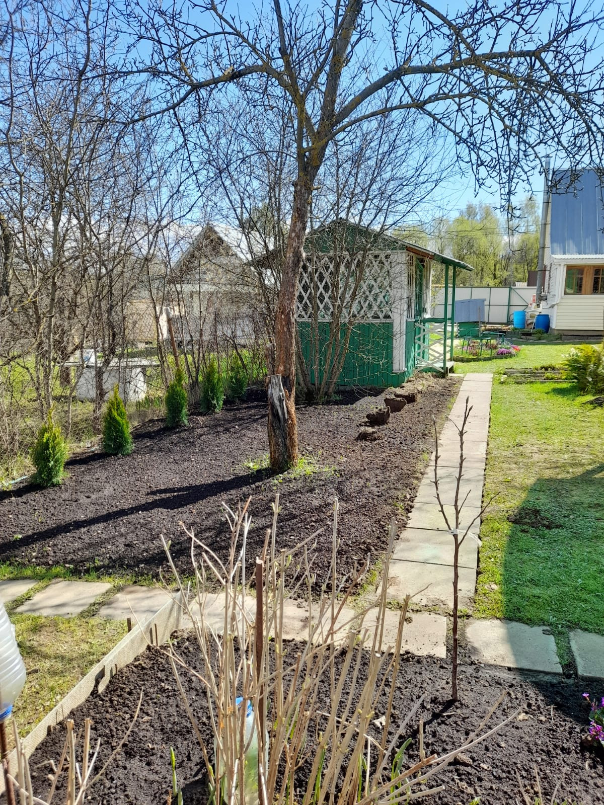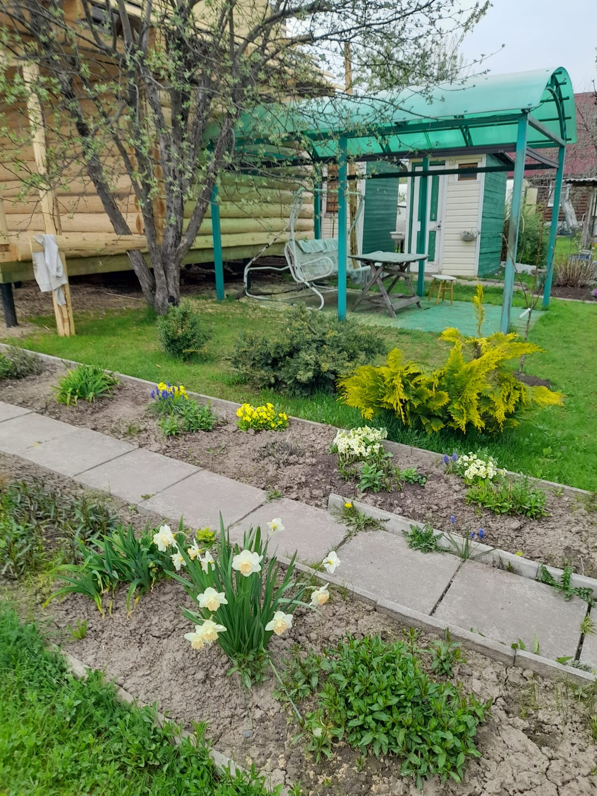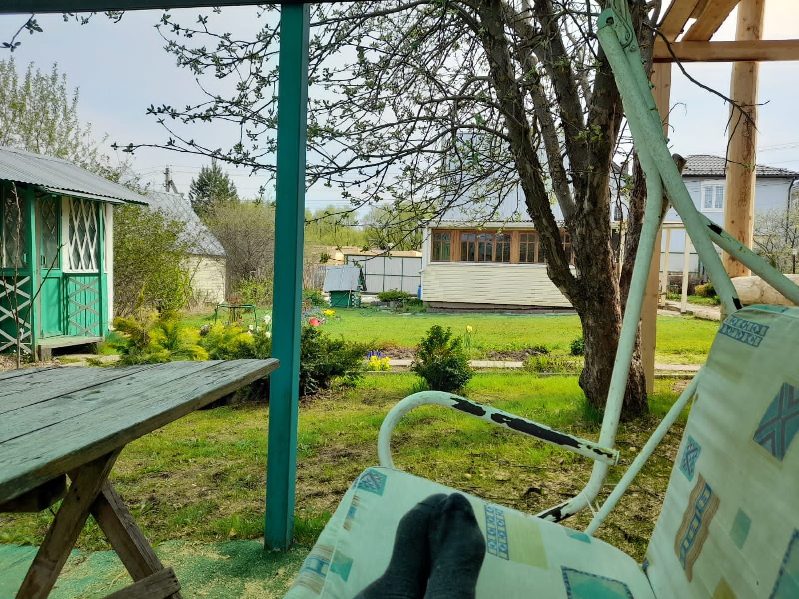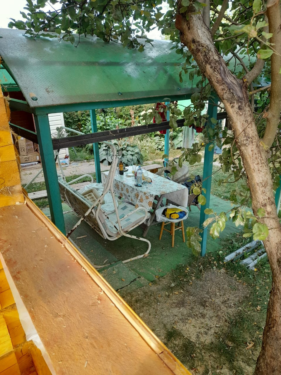 Так же на участке имеется навес с зоной отдыха, качели и мангал. Летний душ, туалет, сарайчик.