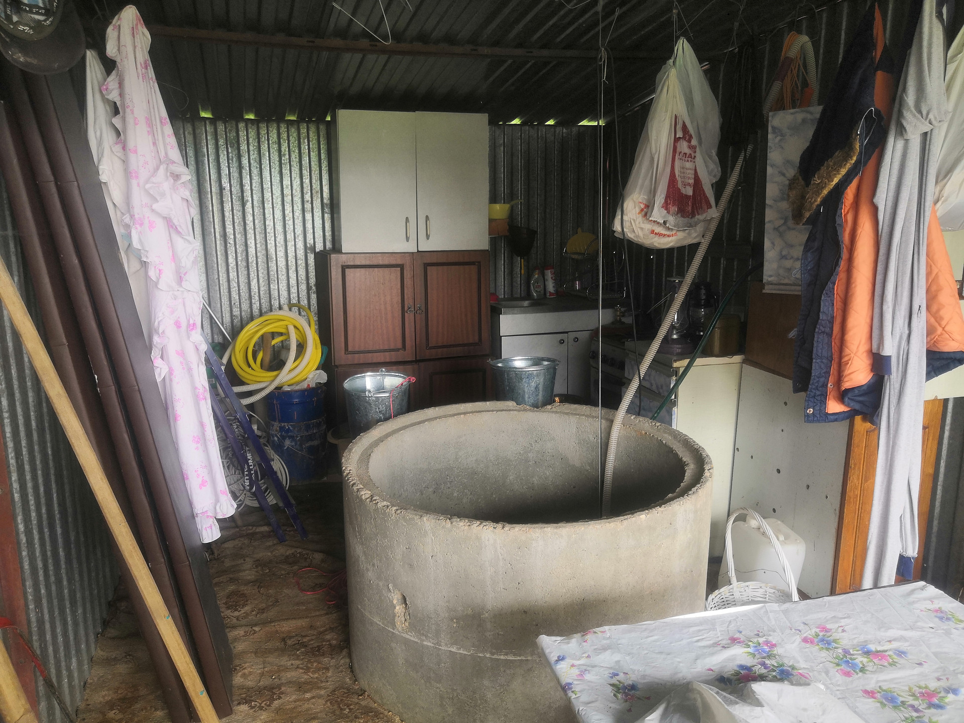 Сама дача сделана из дерева. Есть свой индивидуальный колодец, сделанный в гараже ракушка. Общая площадь дома составляет 80 м2. На первом этаже студия кухня комната, на втором этаже одна комната и лоджия с видом на водохранилище.