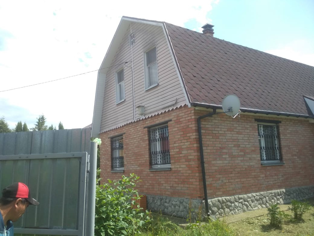 2-х этажный из бруса обложен снаружи кирпичом, теплый, комфортный. Общая площадь дома 100 кв м. На участке имеется капитальная хозяйственная постройка из пеноблоков 25 кв м свободного назначения.