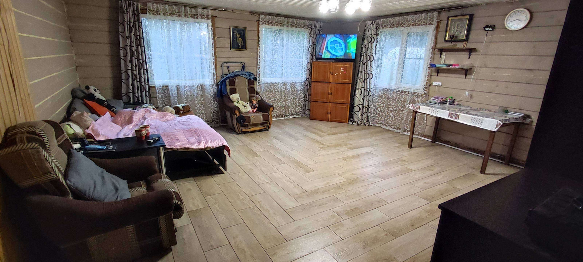 Недалеко от дома расположен пос.Сахорово в котором вся инфраструктура: магазины, школа, детский сад, Сельскохозяйственная академия.Удаление от ближайшей остановки общественного транспорта не более 1 километра, пешком идти 15 мин.В данном доме и СНТ круглогодичное проживание , дорога чистится в любое время года, хороший круглогодичный подъезд.Рядом лес, богатый ягодами и грибами.Один собственник.