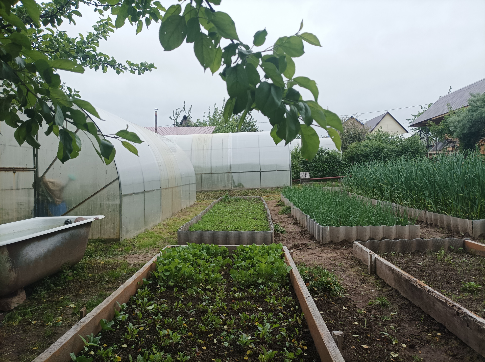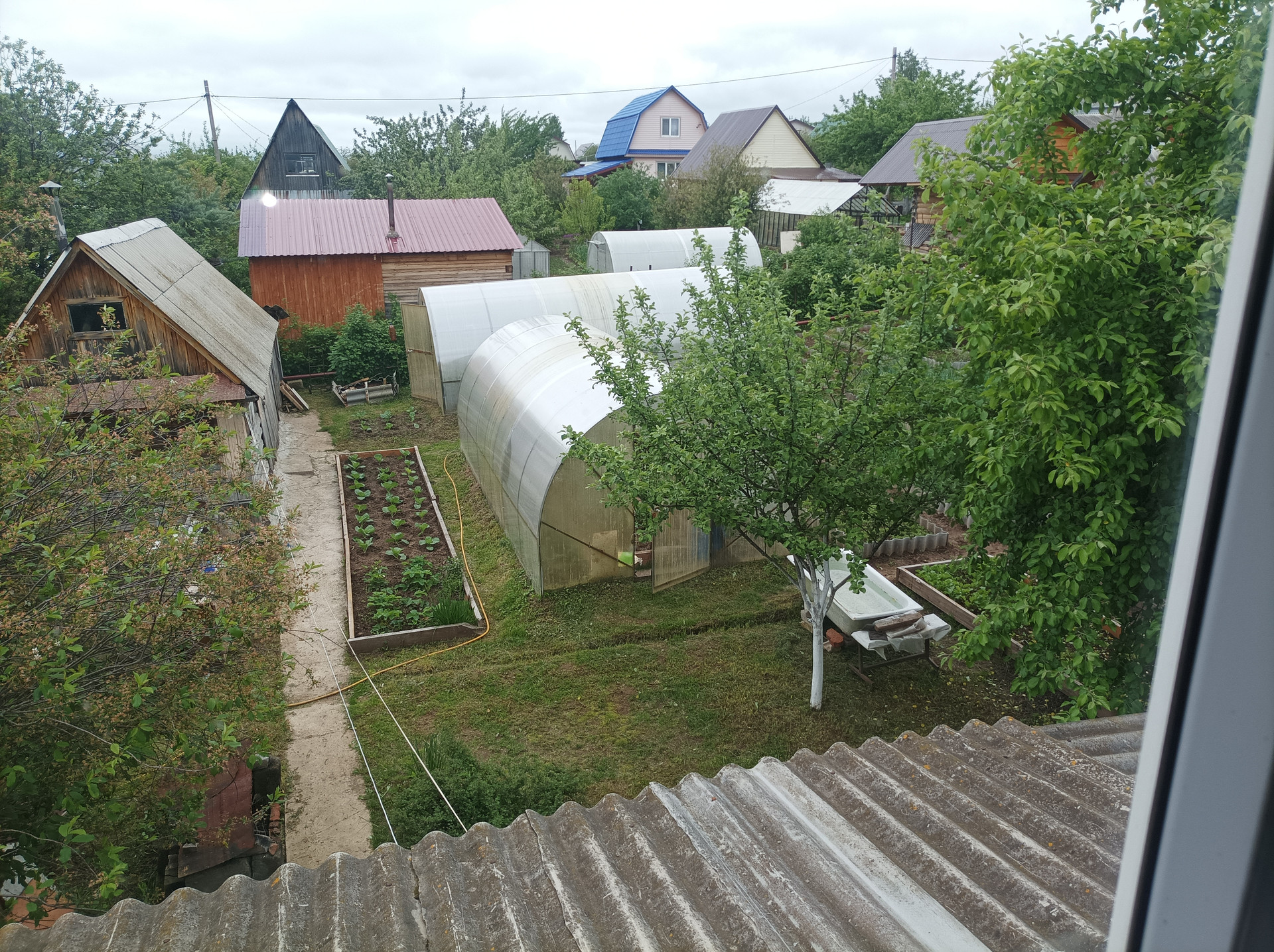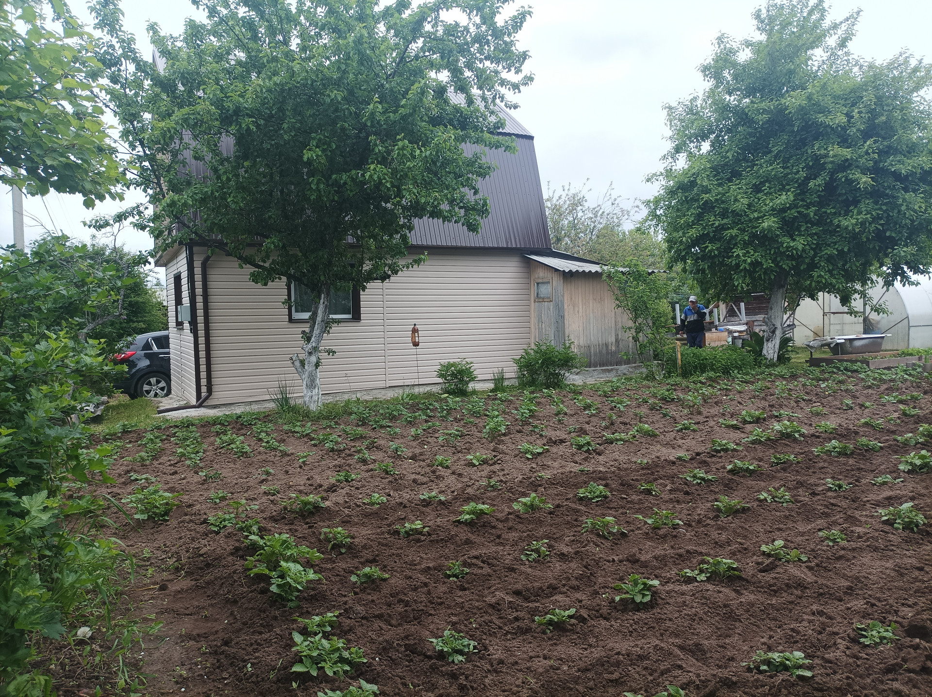 Огород ухожен, земля обработана, различные  посади, много плодовых деревьев и кустарников.