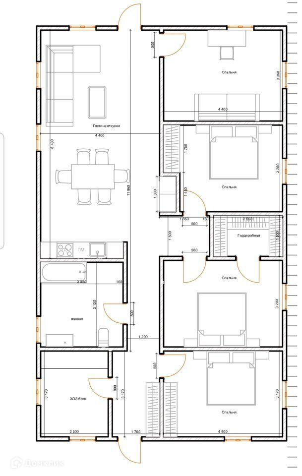 Одноэтажный дом общ. пл. – 130 кв. м.