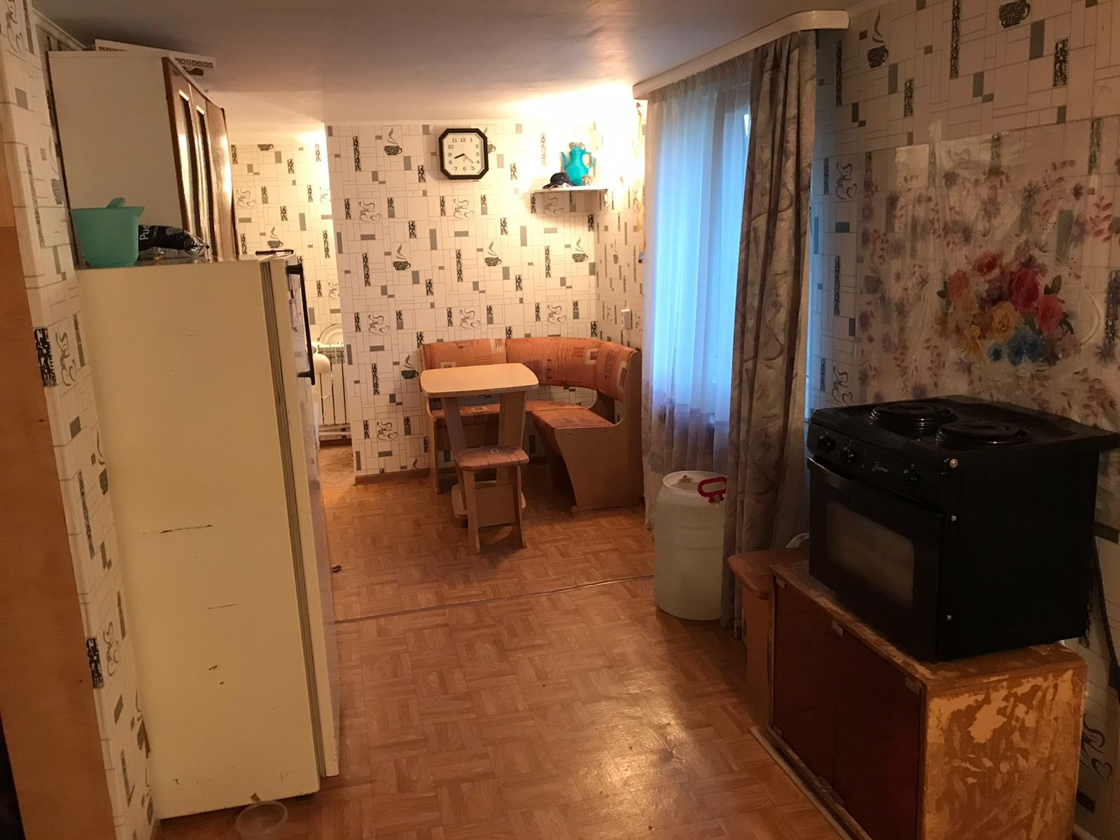 Дом внутри очень уютный , утеплённый,  жить можно круглый год, установлена электрическое отопление  установлены 6 радиаторов. В доме вся мебель и посуда  остаётся "частично", а так же все инструменты для сада и дома. Баня жаркая ,  для внешней обшивки бани есть профлист.