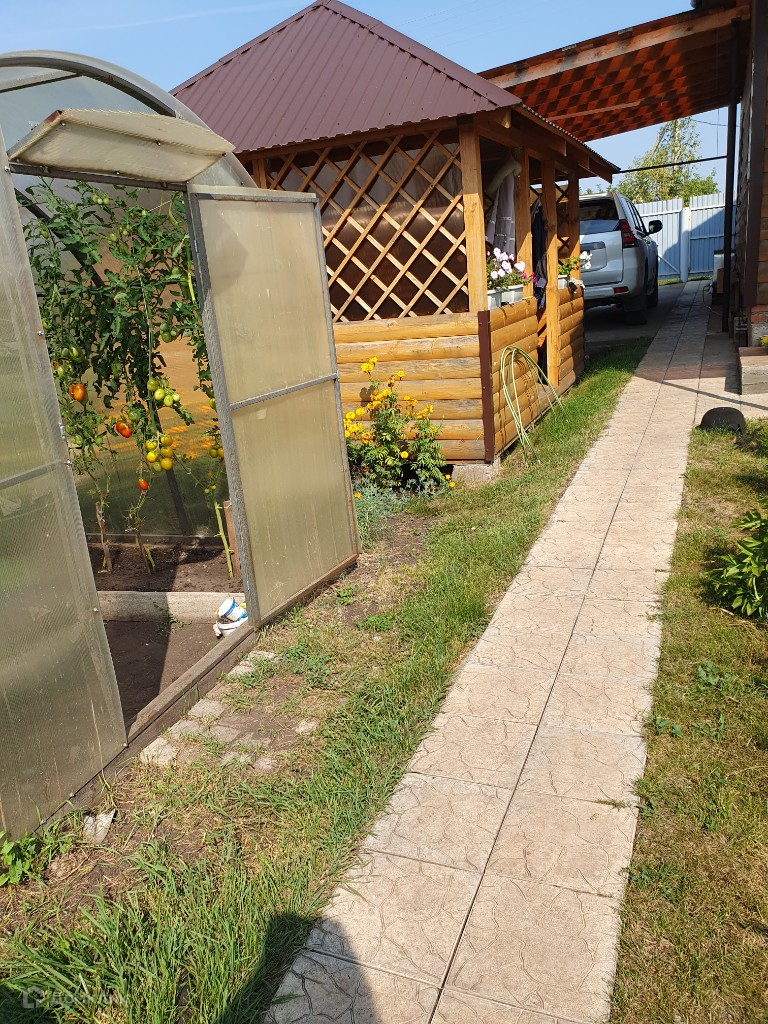 На участке большая теплица, а также имеется навес для автомобиля.