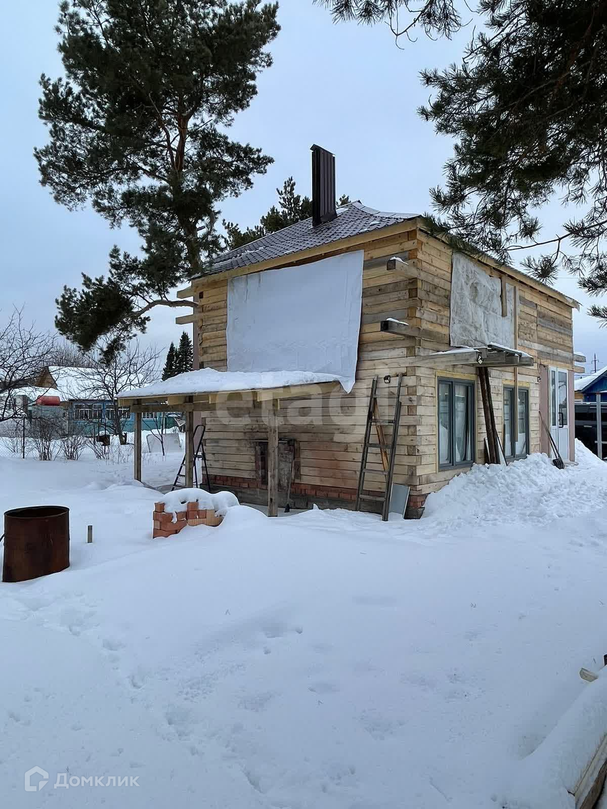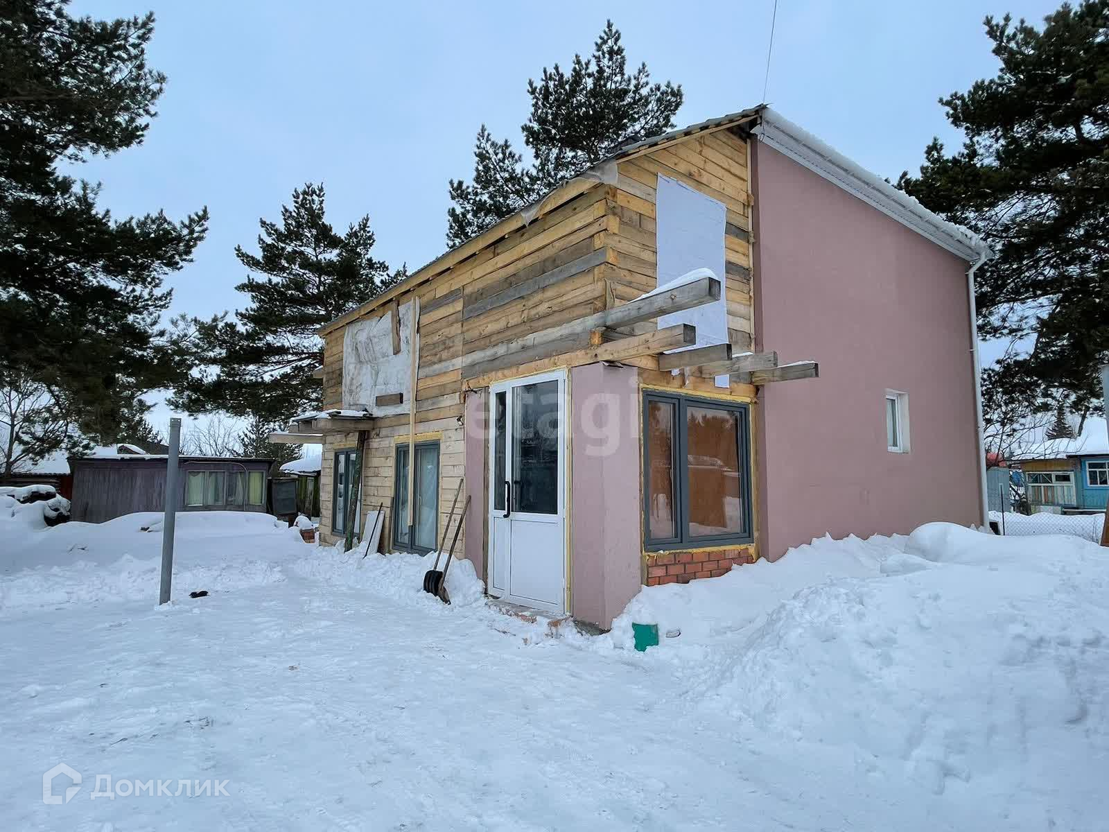 Площадь дома 55,3м2, есть недостроенный пристрой площадью 60м2 в котором на первом этаже организованно место под баню