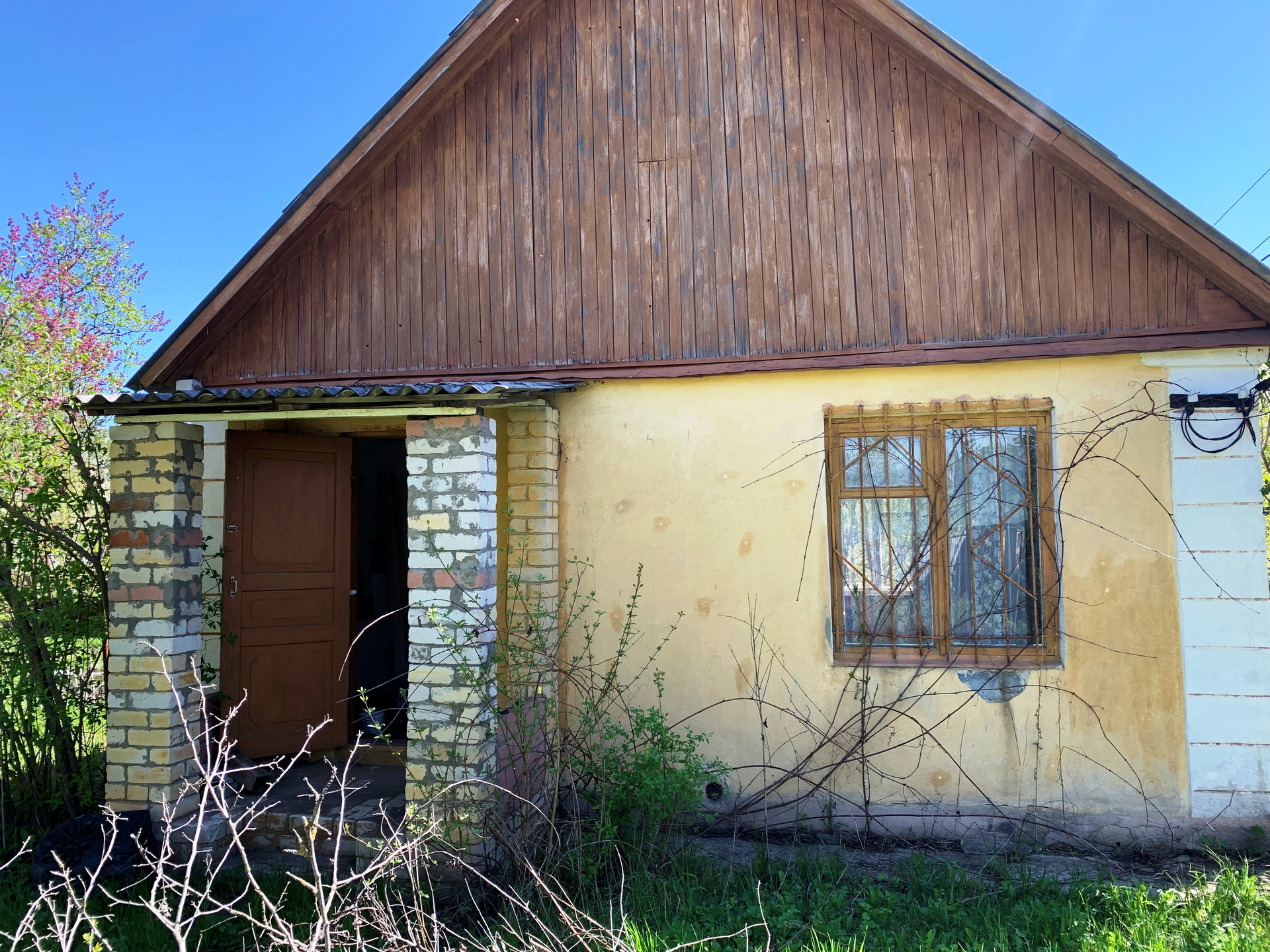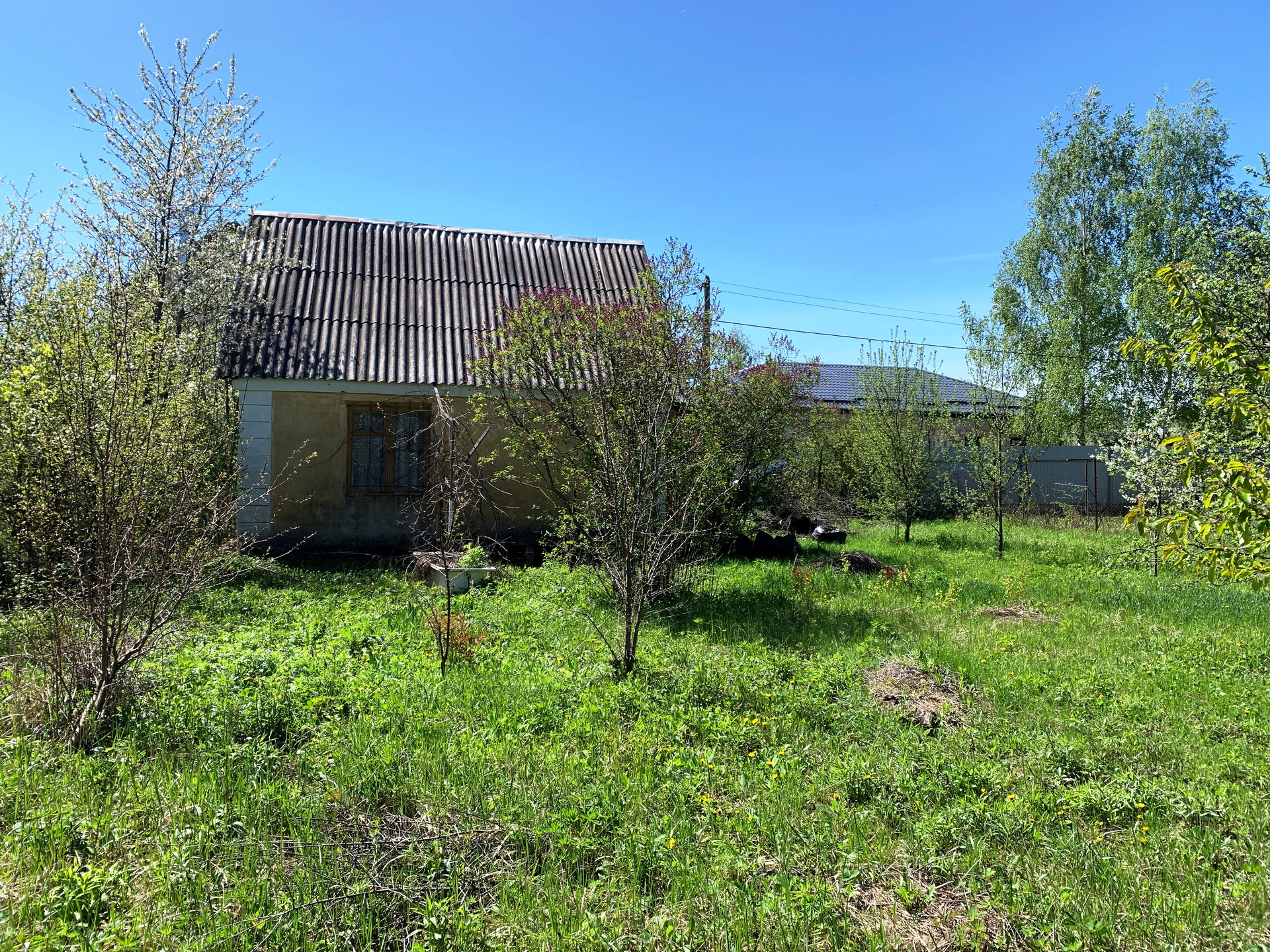На участке дачный дом площадью 25 метров - 1 этажный, из кирпича, состоит из 2 комнат и кухни. Отличные соседи по границы участка.
