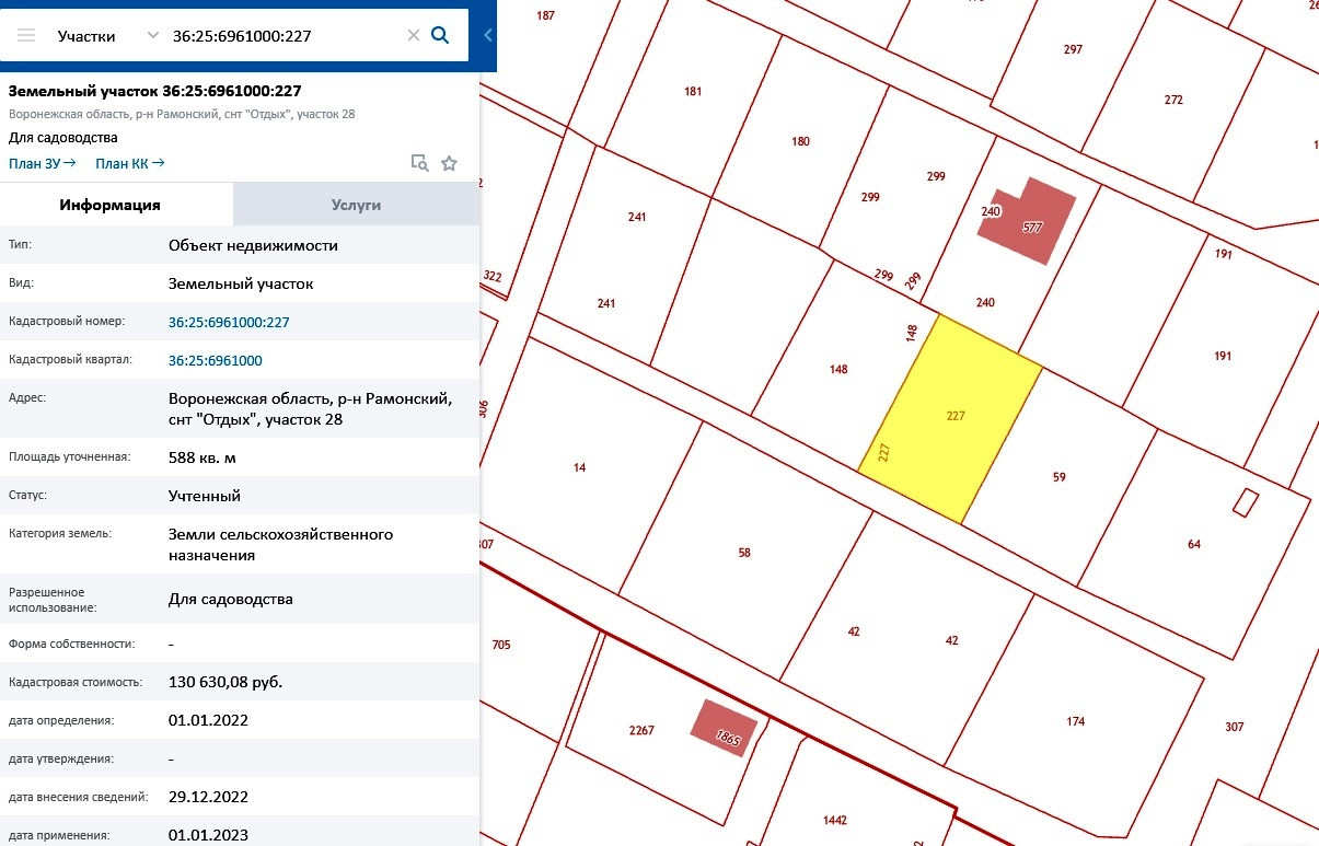 Участок размежеван, кадастровый номер 36:25:6961000:227
