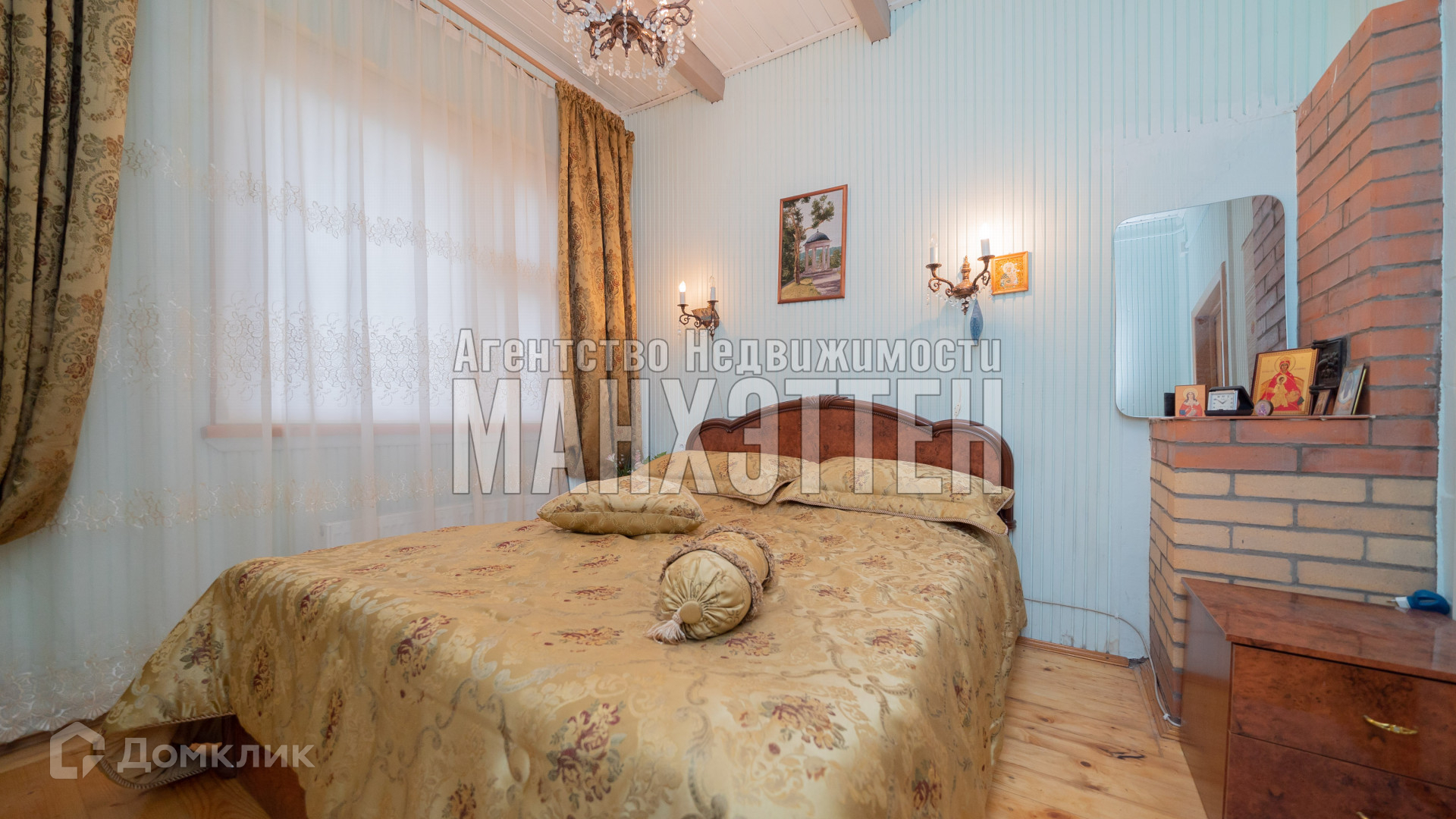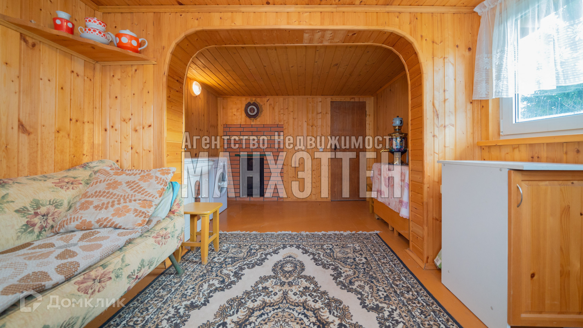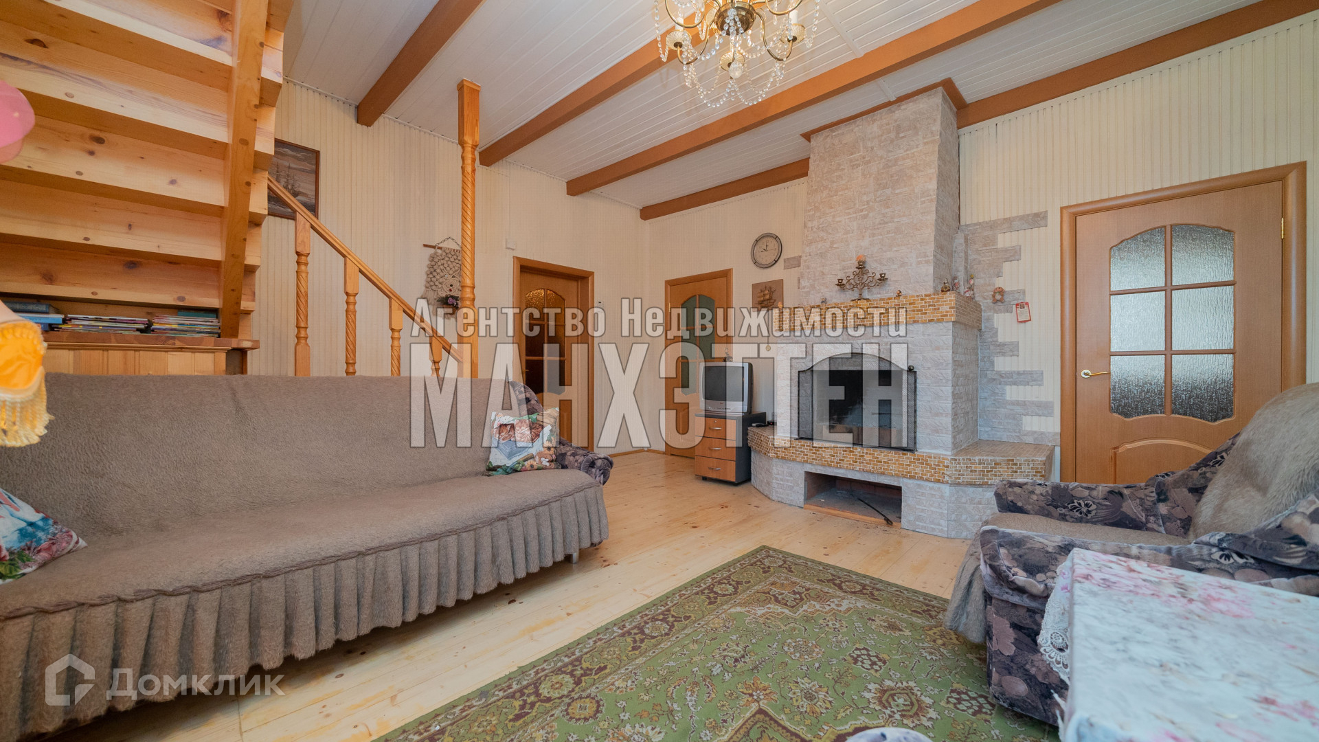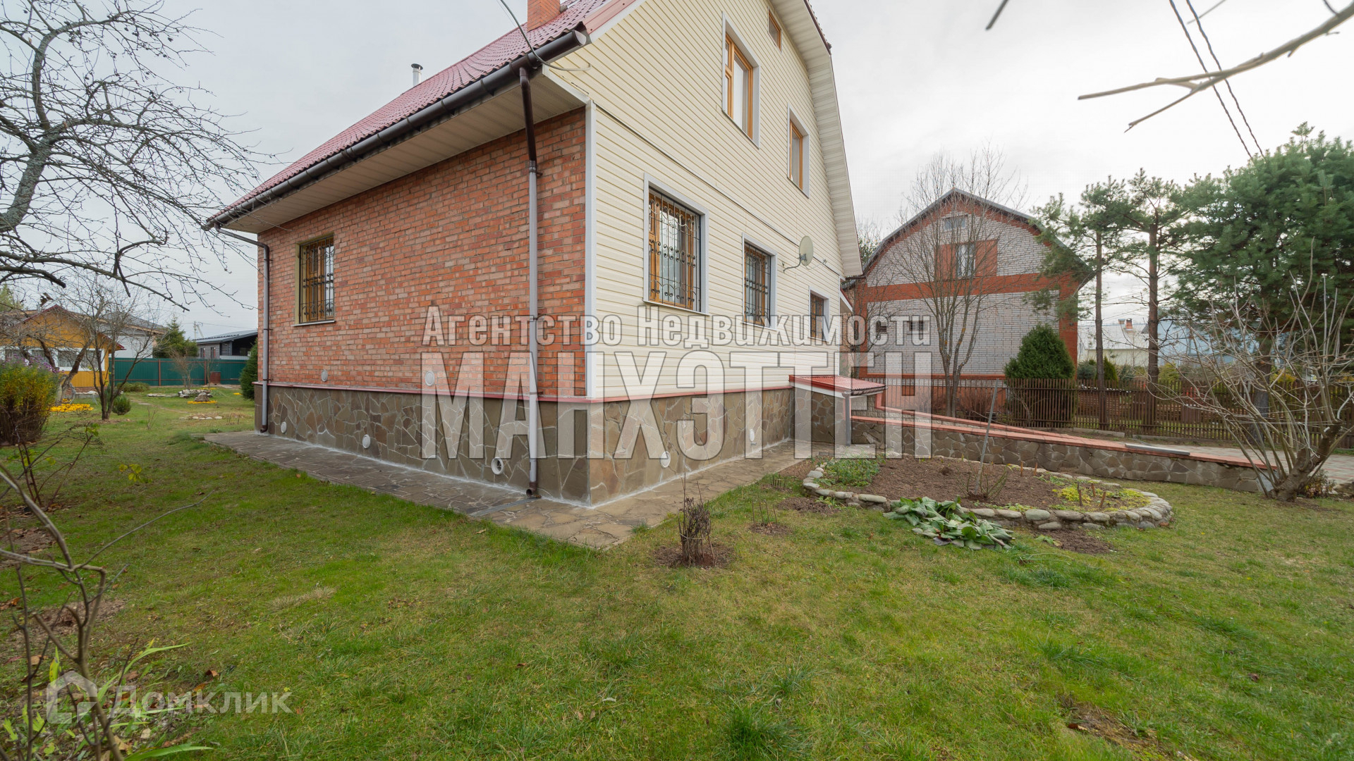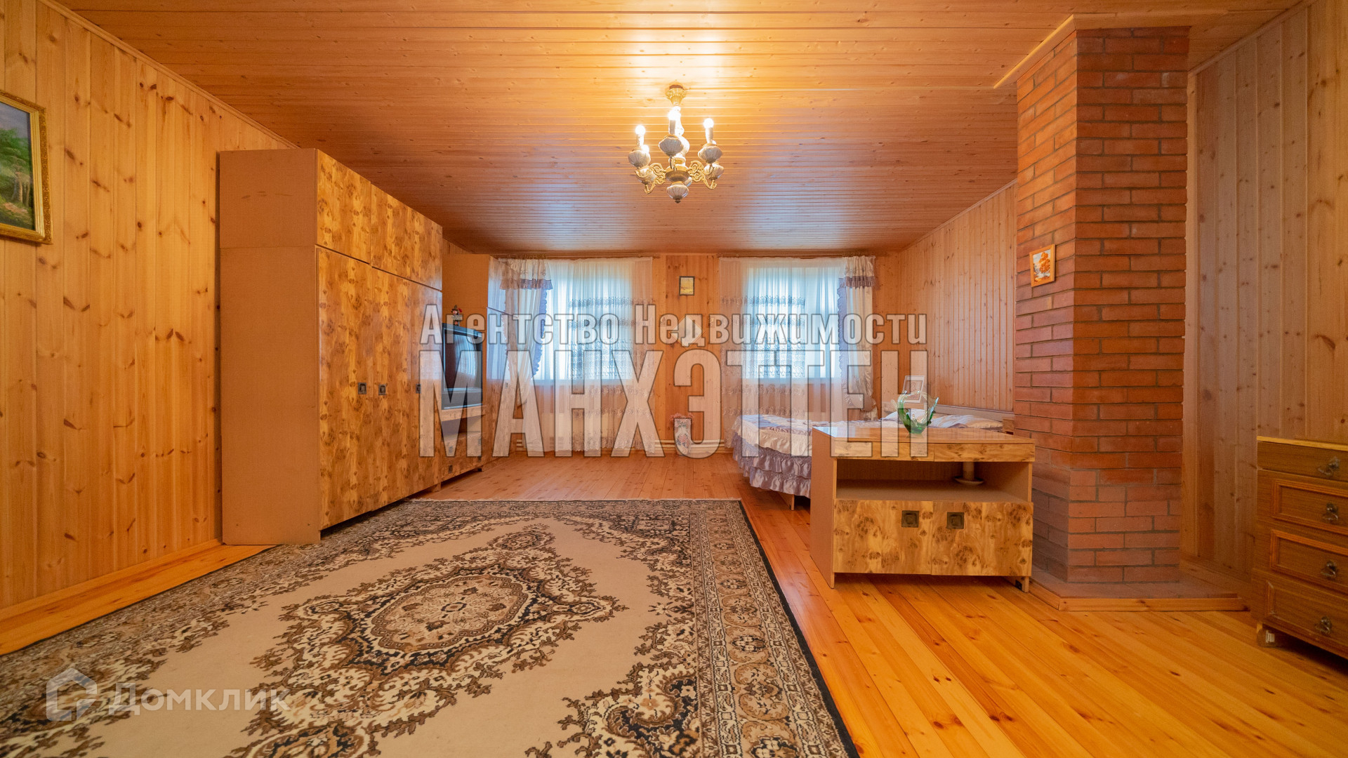 материал дома: бревенчатый, обложенный кирпичом;