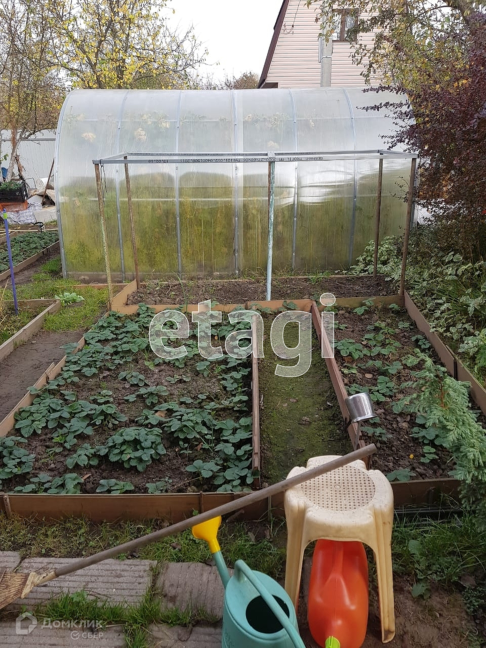 Ухоженный участок 403 м2 с двумя укрепленными теплицами.