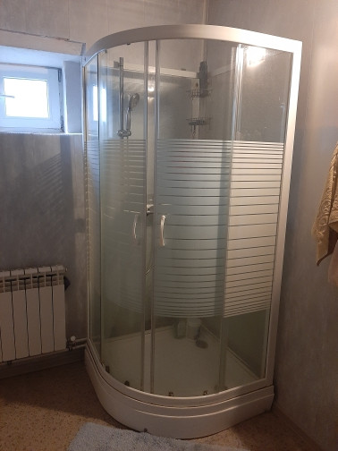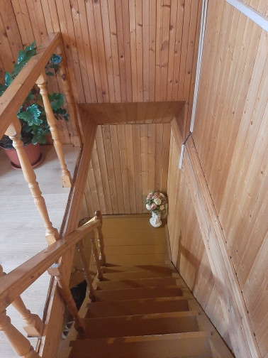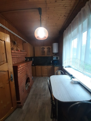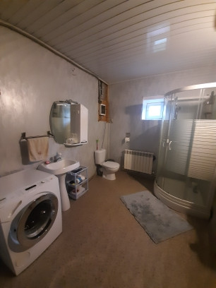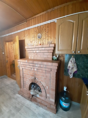 1ый этаж - просторная веранда, прихожая, кухня с камином, большая гостиная с печью, санузел совмещен с душевой кабиной.