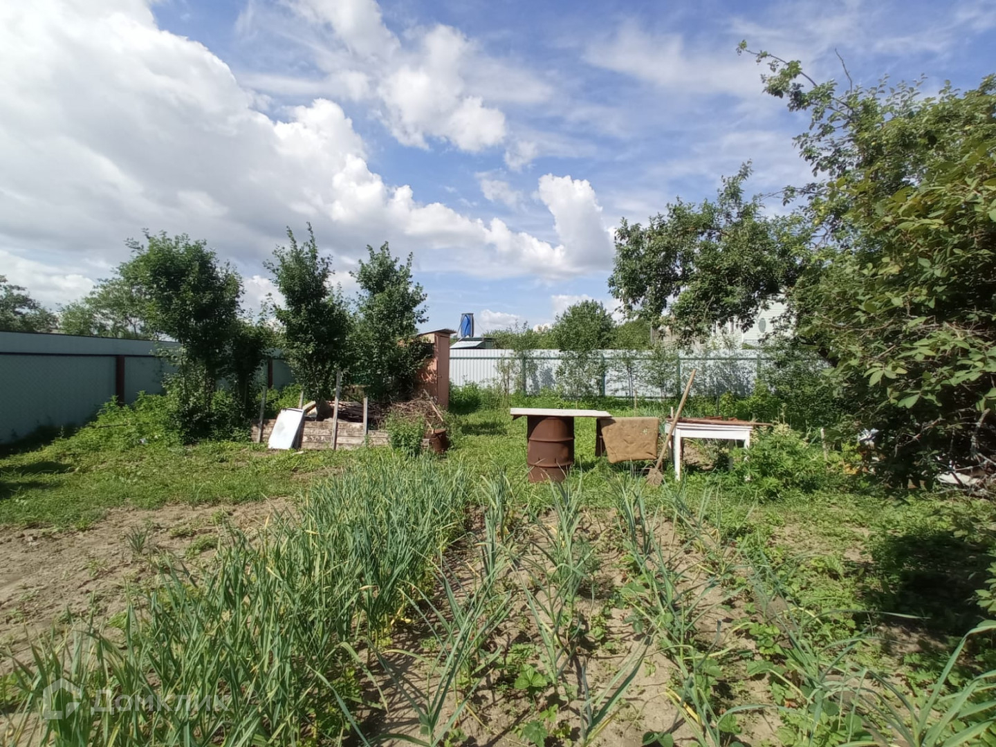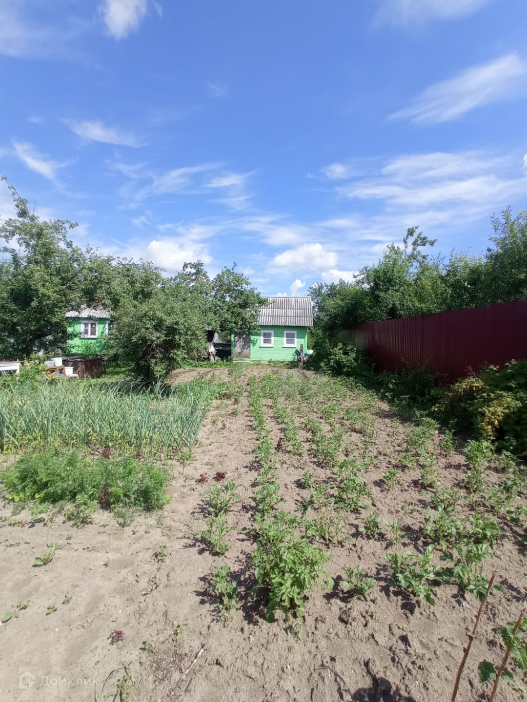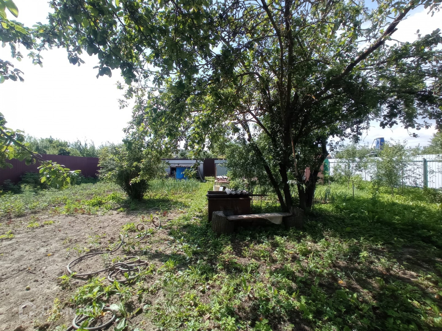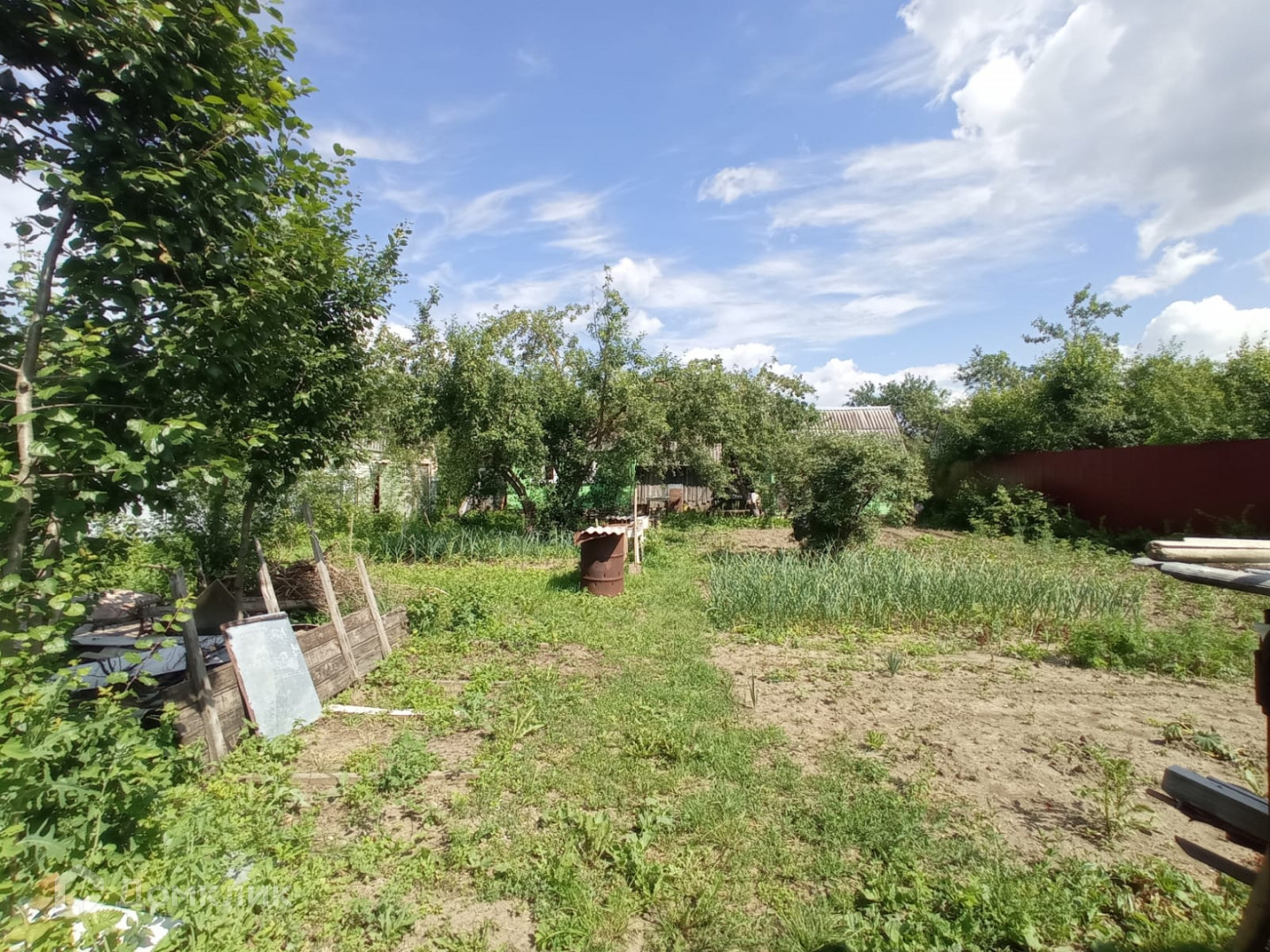 Участок  5,5 сот, ровный, правильной формы, ухоженный. На участке много  плодовых деревьев. Участок огорожен со всех сторон  профлистом.