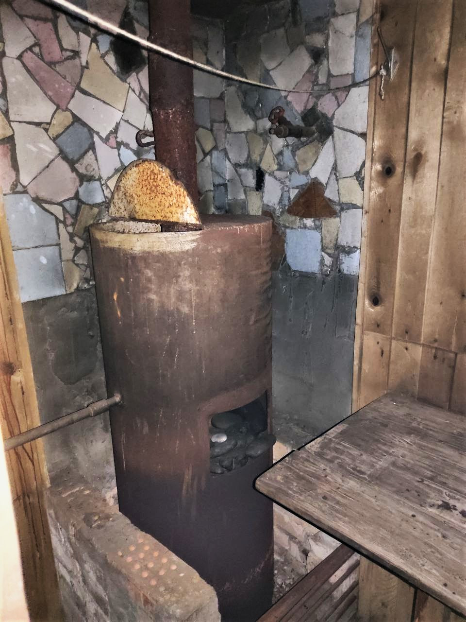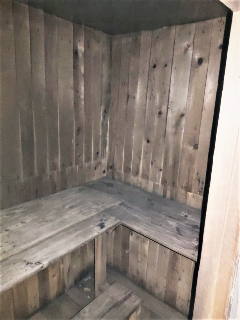 Есть баня 5 м на 3,7 м. Предбанник 1,7 на 3,3 м. Моечная 1,9 на 2,40 м. Парилка 1,20 на 2,55 м. Сарай 1,7 на 4,7 м.