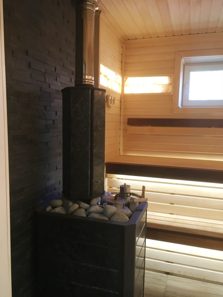 Кроме дома, на участке имеется баня-сауна общей площадью 76,8 кв.м, включает в себя парную, душевую, санузел, комнату отдыха и хозяйственной помещение. Отопление и горячее водоснабжение – от газового двухконтурного котла марки «Вахi». Баня выполнена из таких же материалов, что и жилой дом.