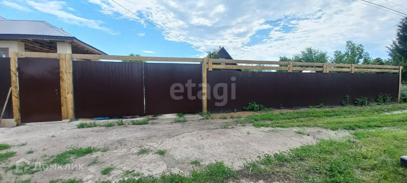 Огорожен забором