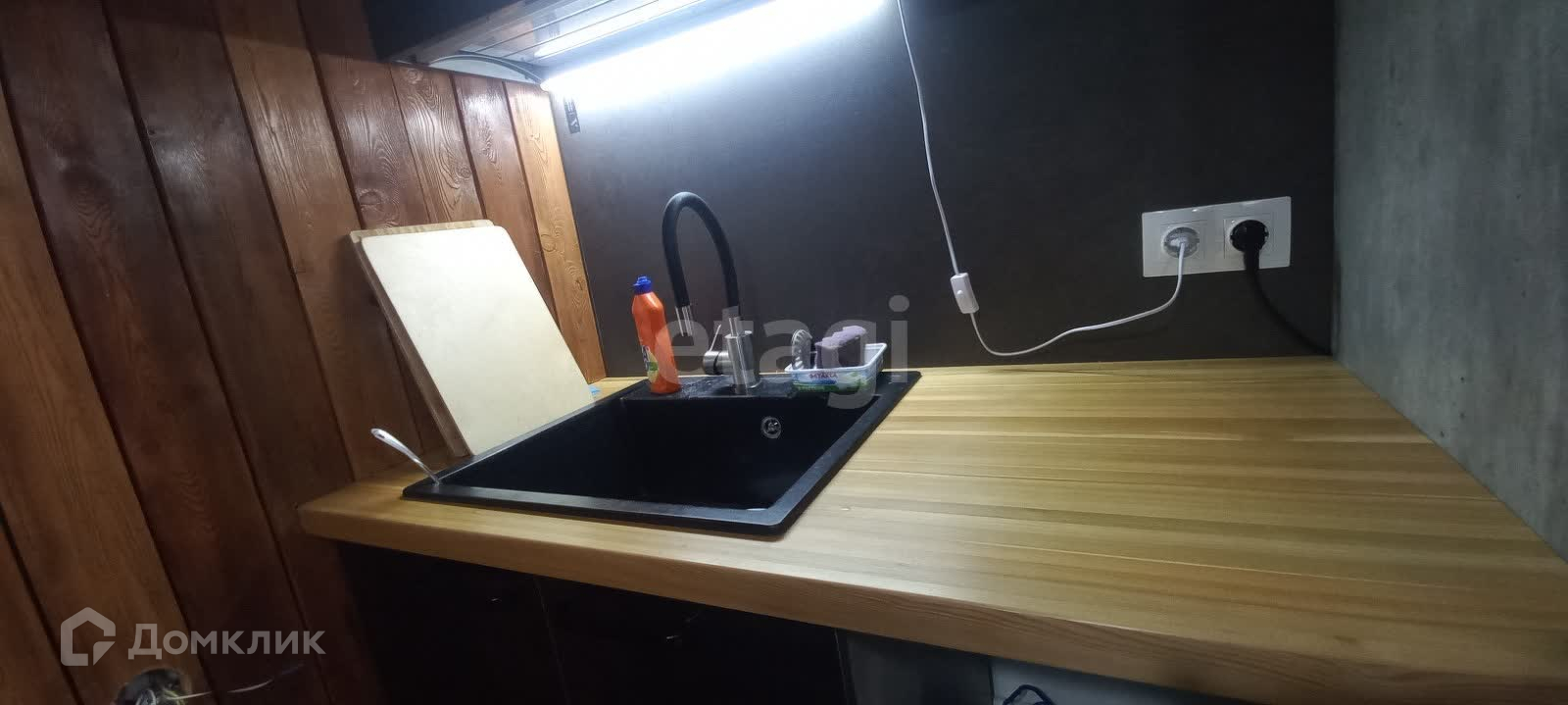Кухня в стиле лофт со столешницами из массива лиственницы.