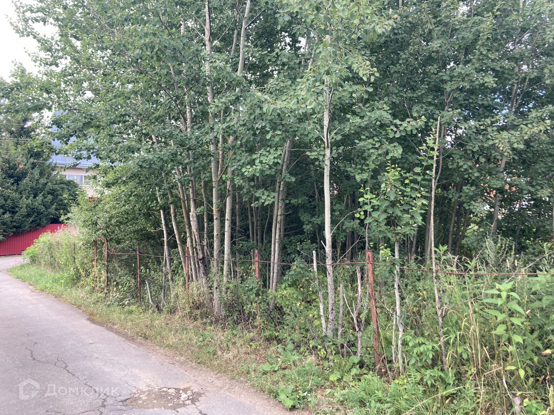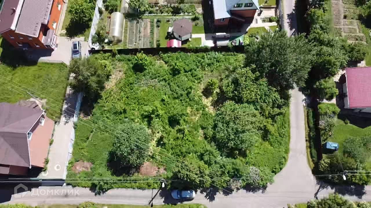 Участок ровный, угловой, имеет прямоугольную форму, на участке растут деревья и кустарники.