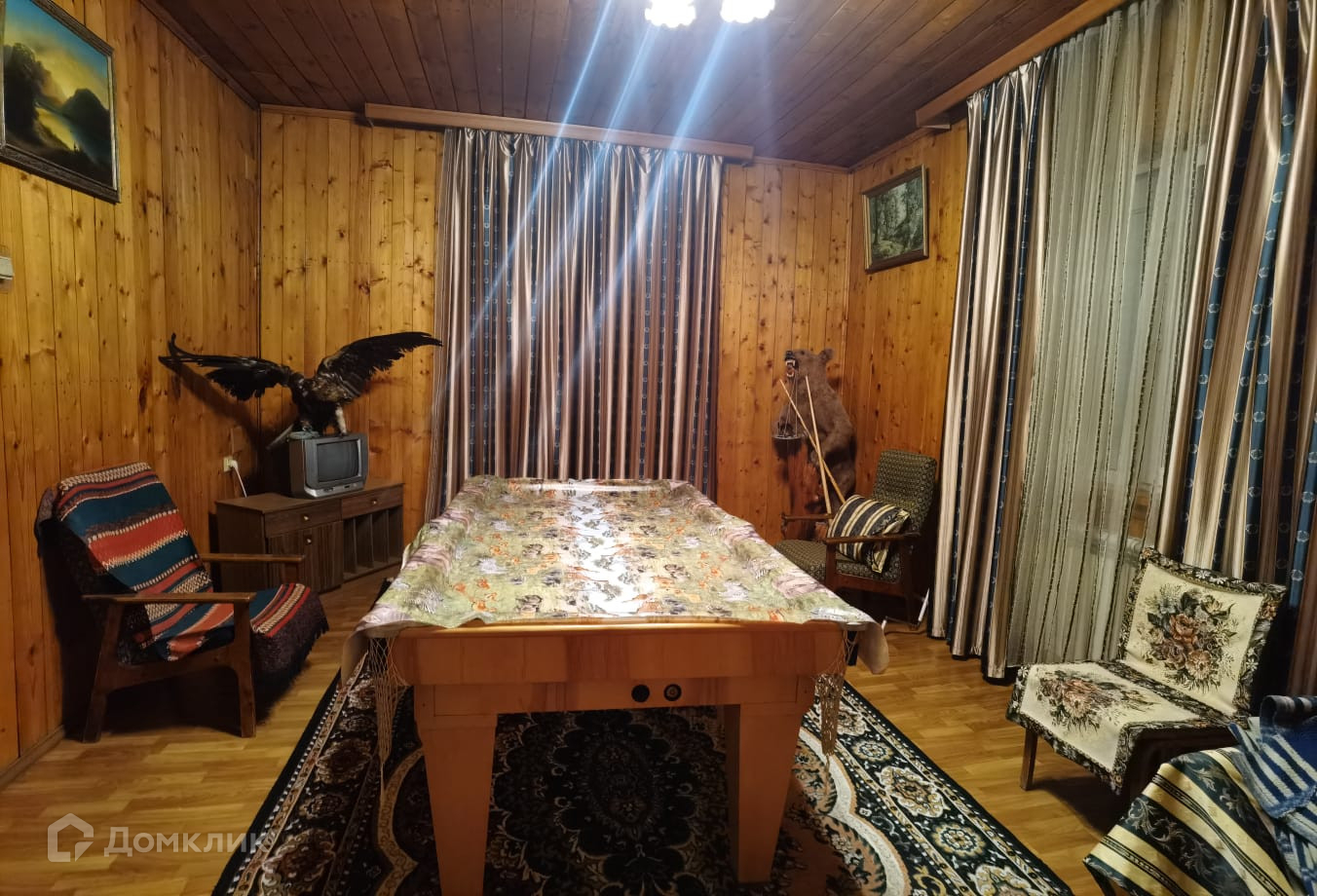 В доме 5 спален и различные комнаты гостиные, бильярдная.