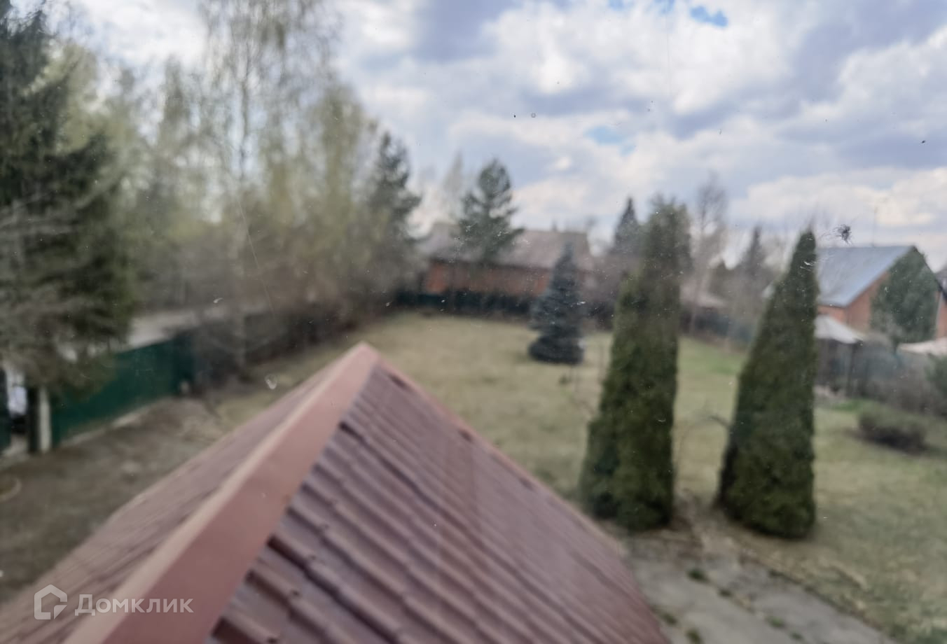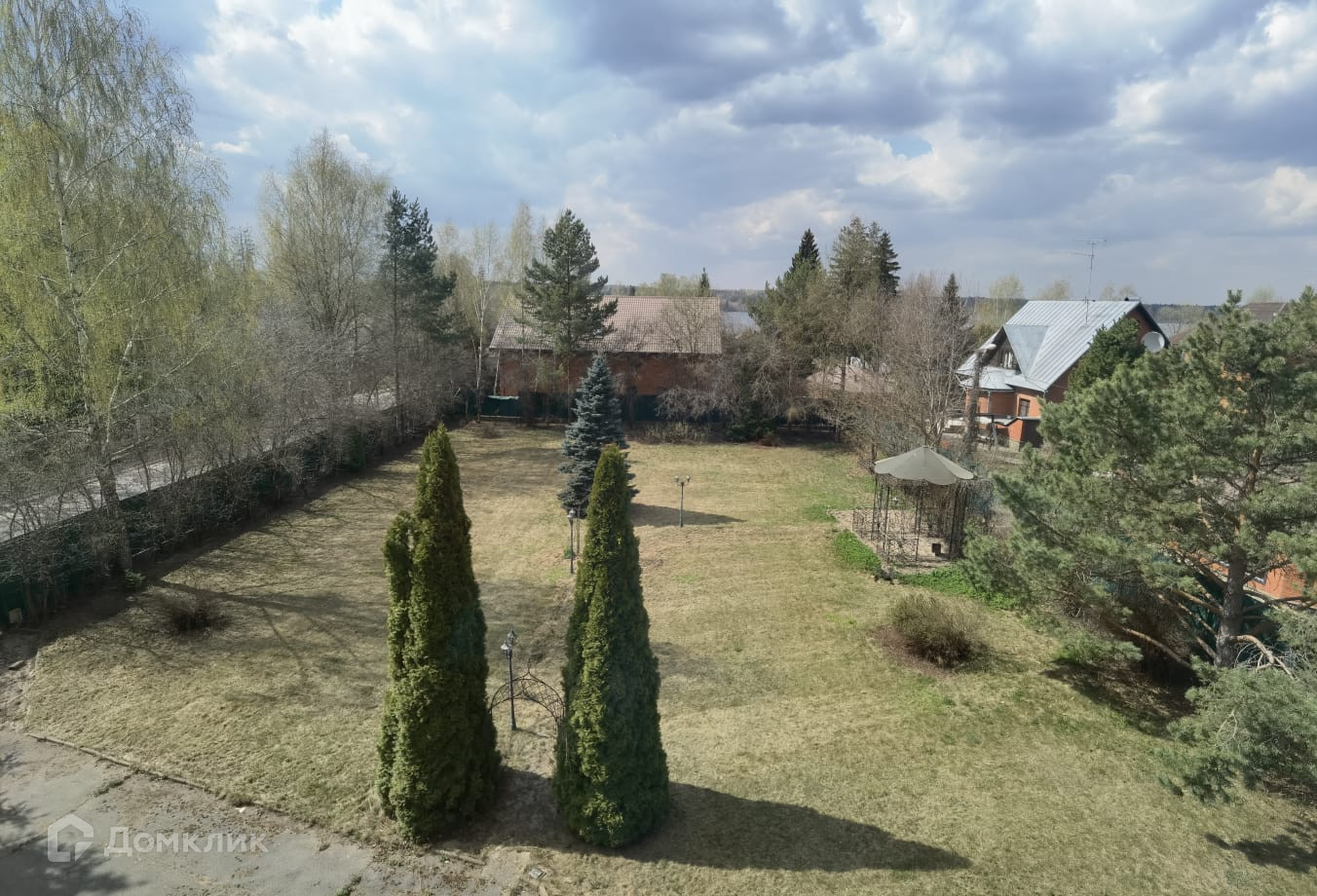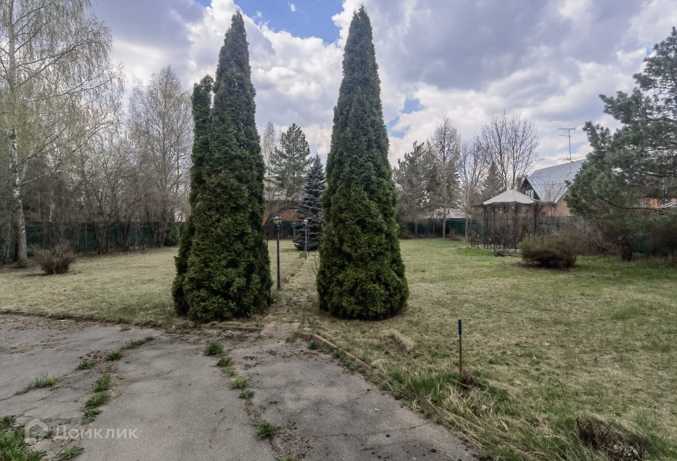 Земельный участок правильной формы. Растут ели, туи и различные плодовые деревья.