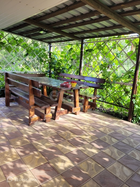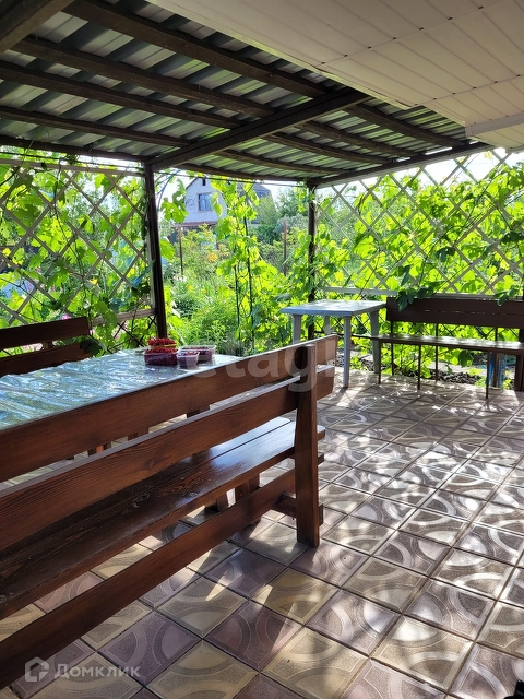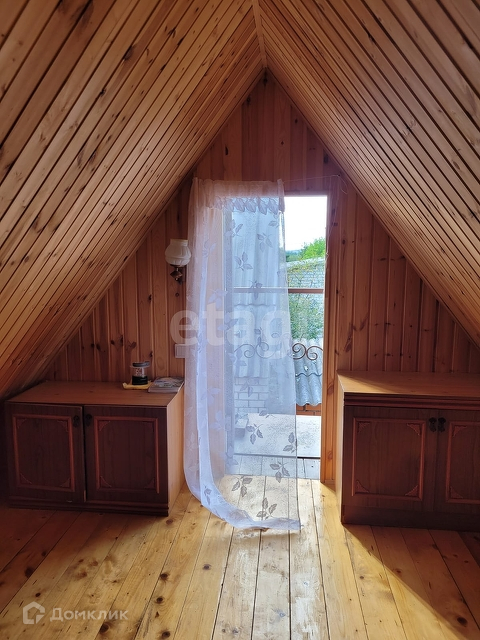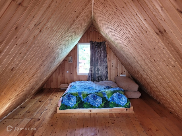 На первом этаже - комната 16 кв м., веранда и крытая беседка. На втором этаже имеется спальня чердачного типа, установлена стационарная уличная лестница.
