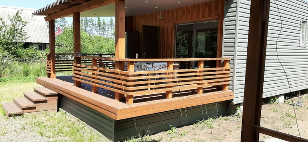 Что касается самого дома, то площадь составляет 36 кв.м. и терраса площадью 24 кв.м., при этом очень просторная кухня и 2 комнаты не проходные комнаты.