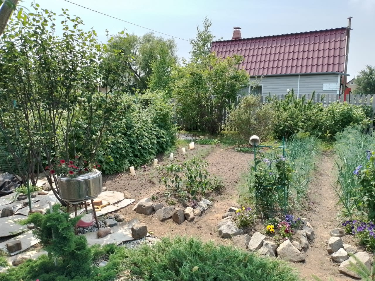А теперь к описанию и перечню насаждений, а их очень много: жимолость, лимонник, актинидия, сливы, алыча, груши, яблони, адония, ирга, рябина, калина, малина, клубника, всего и не перечесть т.к на фото видно что красота неописуемая. Очень много сил было приложено на данном участке. Также здесь располагается 2-х этажный дом, летняя кухня, баня, летний душ, дровяник, тех. помещение для инвентаря. На участке очень большое количество многолетних цветов и хвойных деревьев. Как говорится лучше один раз увидеть... За более подробной информацией обращаться по телефону. Продажа в связи с возрастом...