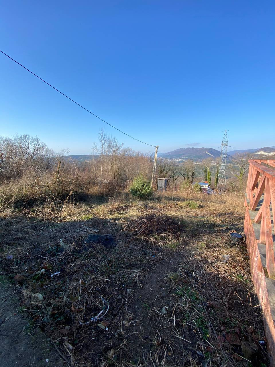 Из коммуникации подключено электричество. Вода есть у соседей выше.