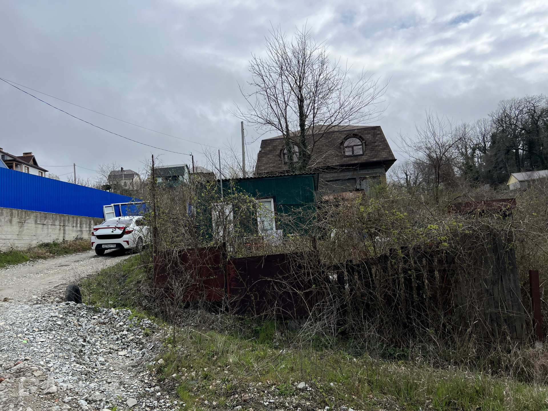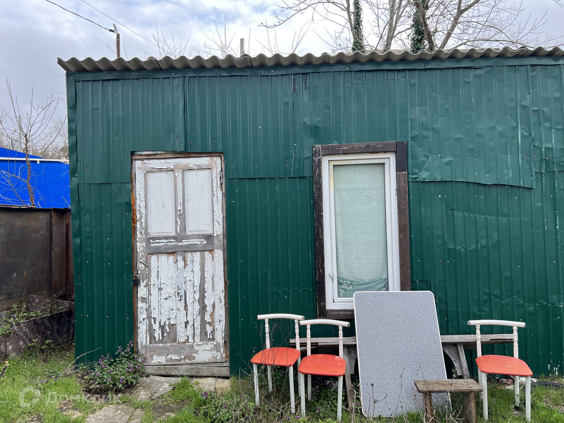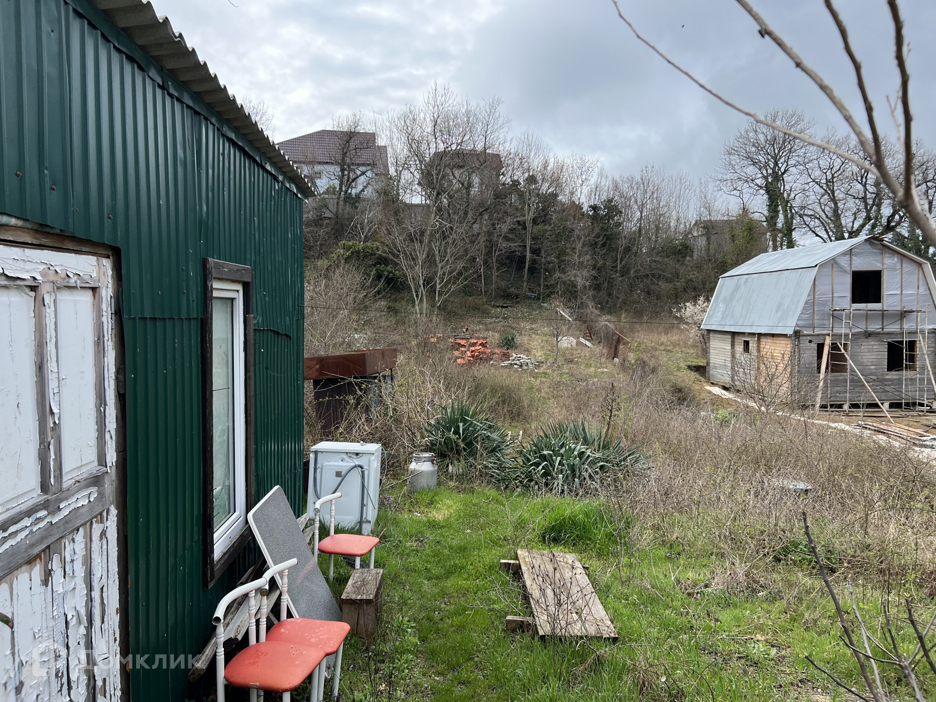 На участке стоит вагончик.