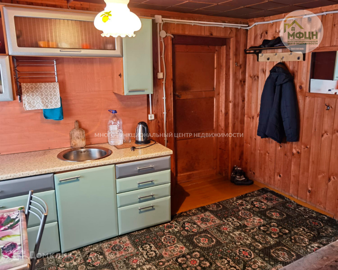 Комнаты обшиты вагонкой, на полу напольная доска.