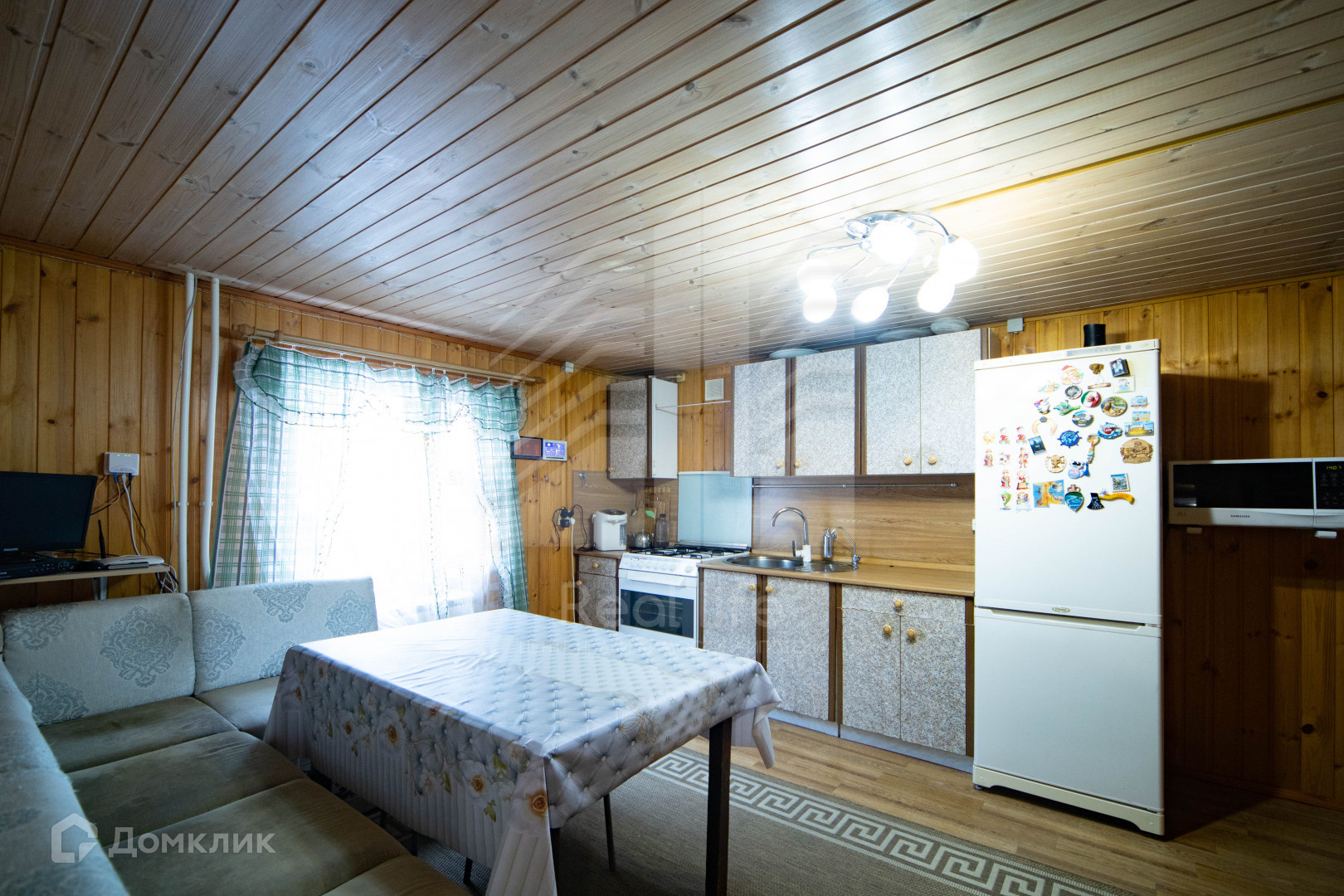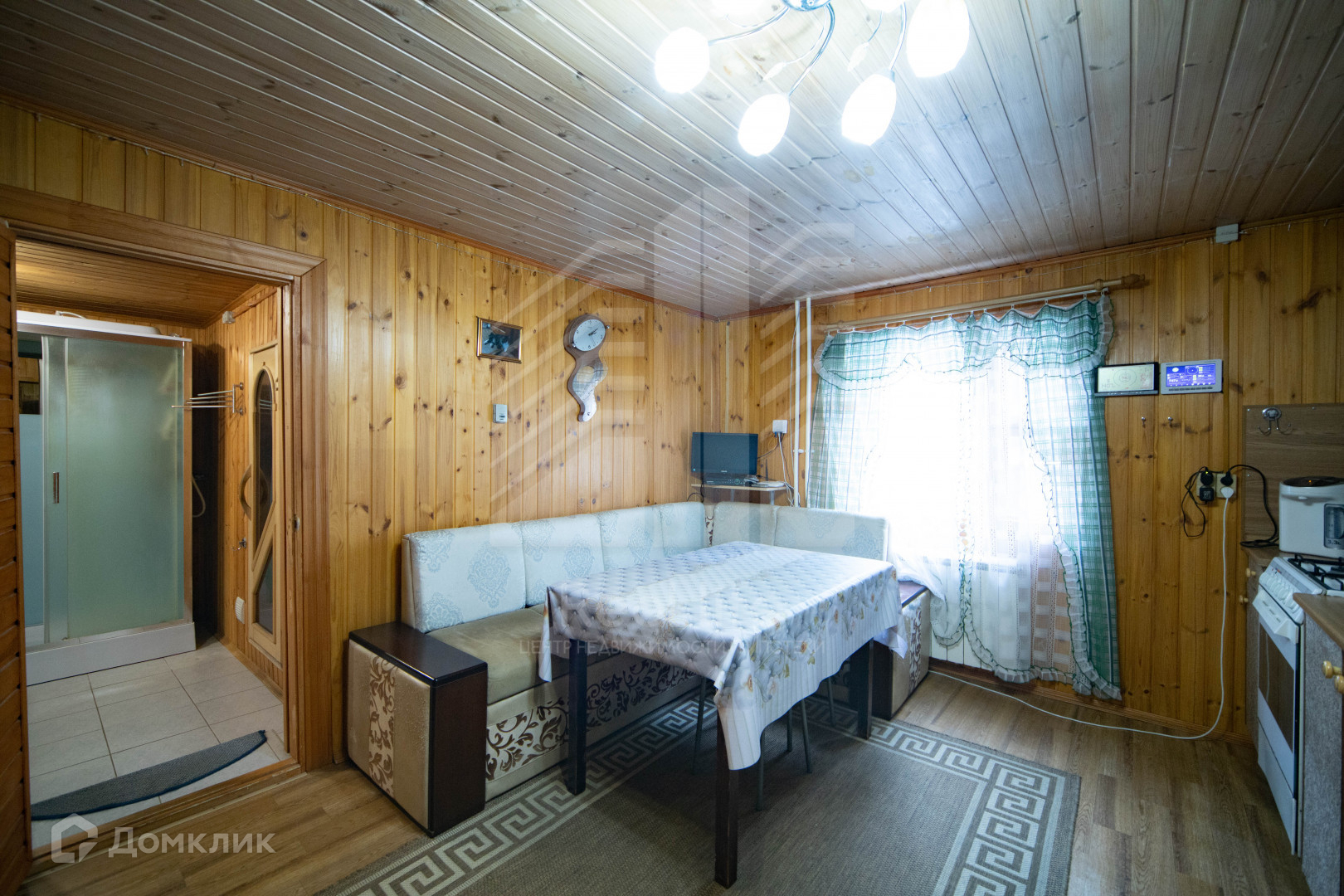 Дом построен из бруса 15х15, утеплен снаружи и внутри.  Внутри обшит вагонкой, снаружи обшит сайдинговыми панелями.  Дом очень теплый с 5 спальнями.  Две комнаты на первом этаже и 3 на втором. В доме баня и гараж. Коммуникации все есть: комбинированная система отопления (электричество, дрова, уголь), канализация септик, скважина и также есть колодец. На участке, теплица, детская площадка, барбекю.  Земля удобрена собираем каждый год много урожая, много цветов посажено. Улица тупиковая.  СНТ находится в окружении леса со всех сторон, в непосредственной близости (около 20 метров) ухоженный пруд. Въезд через шлагбаум. Дороги зимой чистятся, много соседей живет круглогодично.