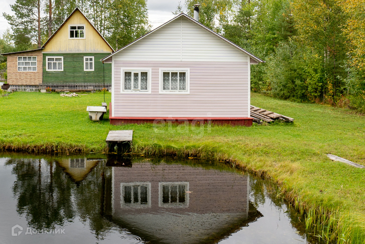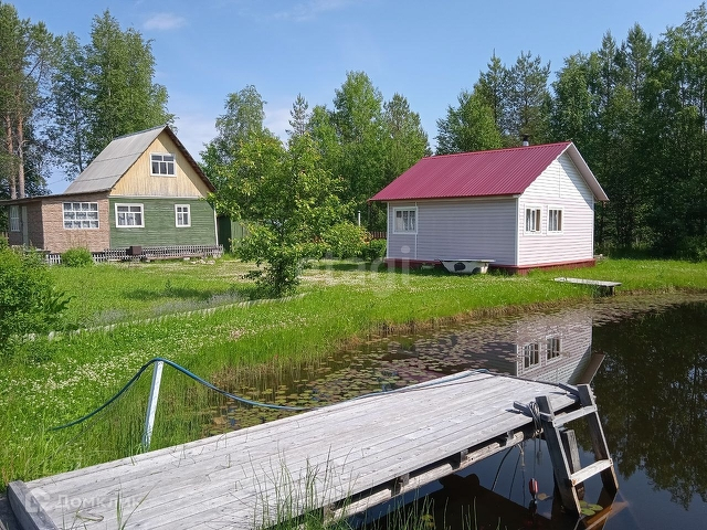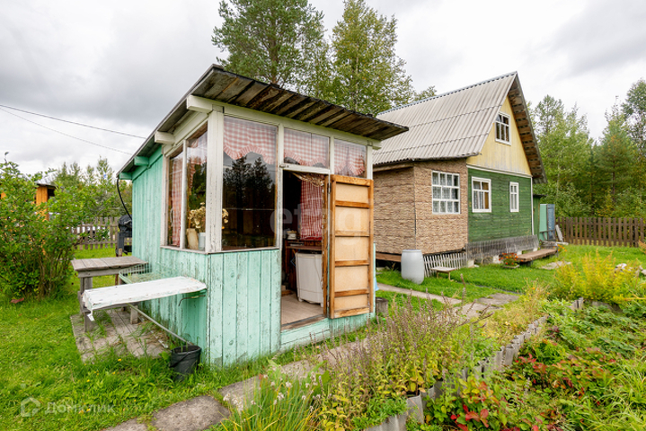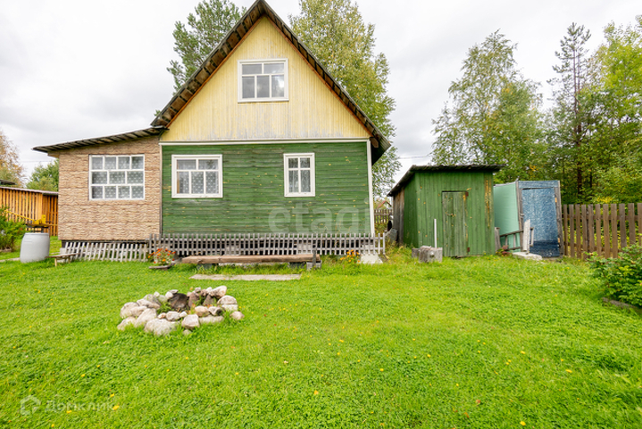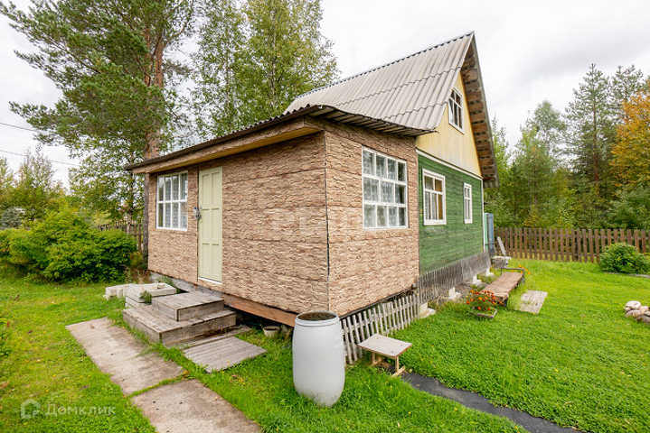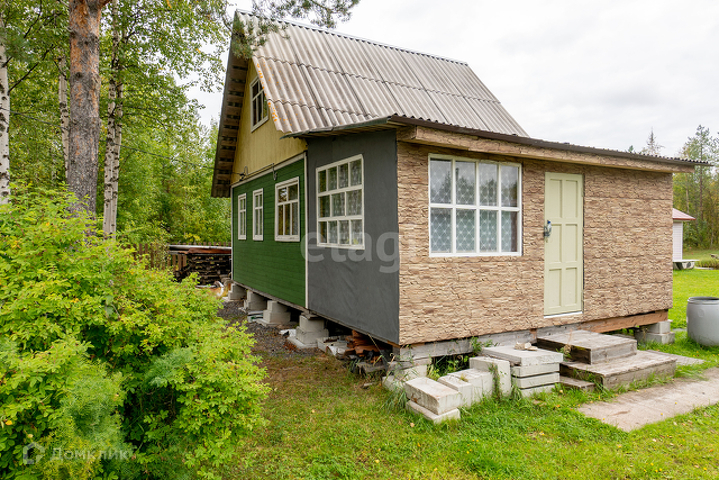 Дом-каркас, обшит деревом. Фундамент- бетонные блоки. Дом располагается на участке 8 соток.