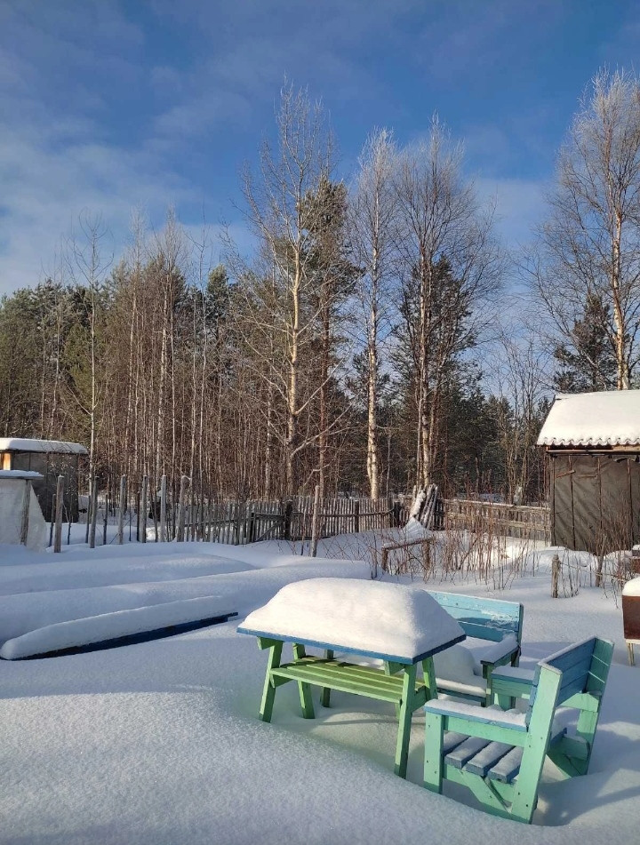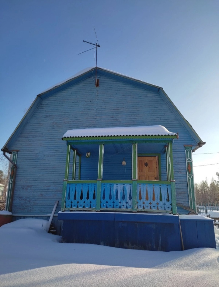 Дом расположен в уютном месте на краю леса, вдали от основной улицы, здесь много зелени, тихо и спокойно. Несмотря на такое прекрасное месторасположение - от въезда в СНТ Пеньки 9 линия участок 17; всего пять минут езды. Территория разделена на два участка. На одном стоит двухэтажный дом с открытой верандой и балконом. Сарай с дровами и инструментами. Мангальная зона. Смородина, крыжовник, малина, ирга, облепиха, клубника, розовый куст, многолетники, хмель. Есть место под баню и теплицу, грядки под зелень и цветы. На втором - огород - земля плодородная, разработанная под овощные культуры, также высажена клубника. В лесу растут морошка, голубика, грибы, клюква. Рядом с участками водоемы для полива. В доме три комнаты и кухня на первом этаже и одна большая на втором. Проведено электричество. Он полностью готов впустить новых владельцев. Хорошая кирпичная печь (очень теплая), газовые баллоны с пройденной проверкой, телевизор со спутниковой антенной, холодильник, вся мебель.