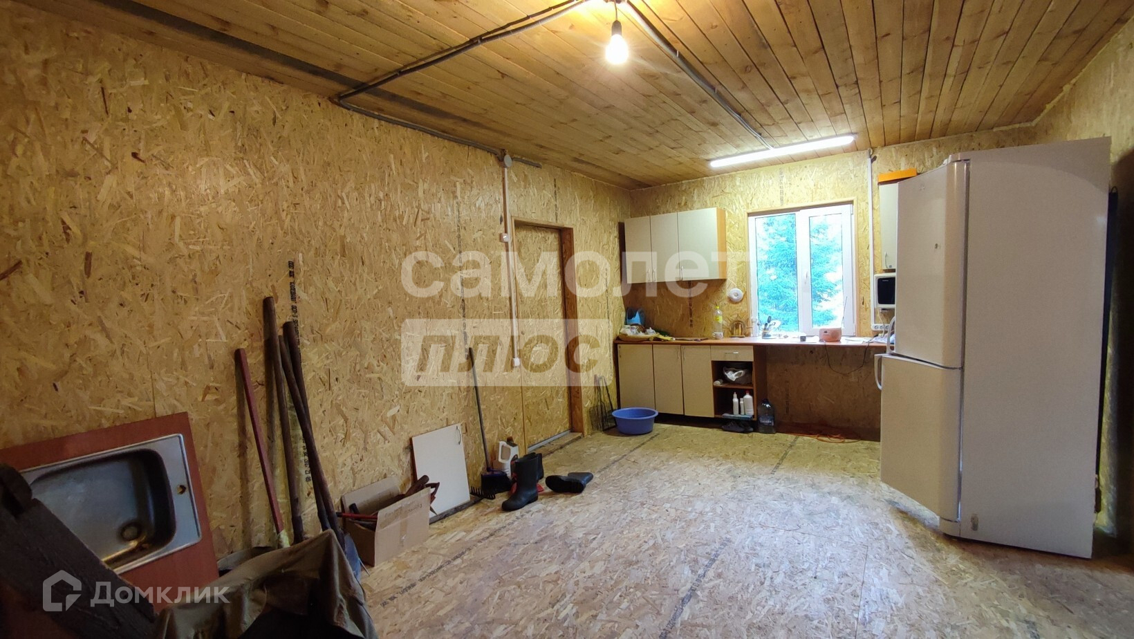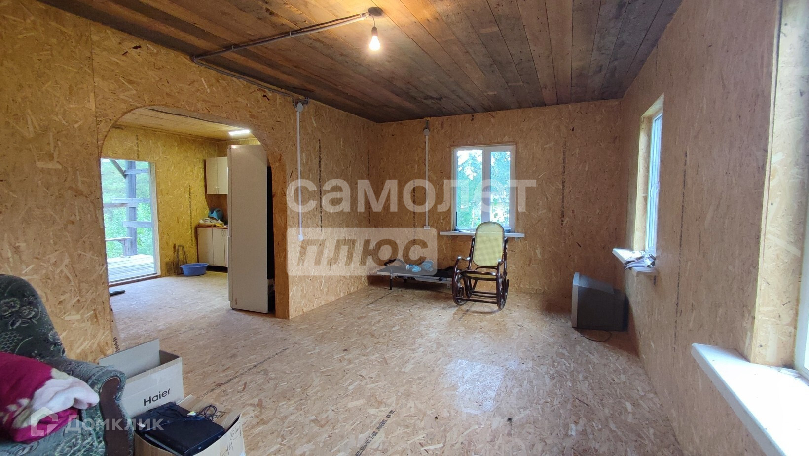 Сделано зонирование кухни-гостиной. На втором этаже огромное пространство и есть возможность сделать две отдельные комнаты. Под домом расположен погреб, и огромное пространство для хранения вещей, инструментов и техники. Расположен на участке площадью 20 соток и по периметру огорожен высоким железным забором. Граничит только с одними соседями. На участке растут ели, сосны, кустарники за счет этого создается особенная атмосфера.