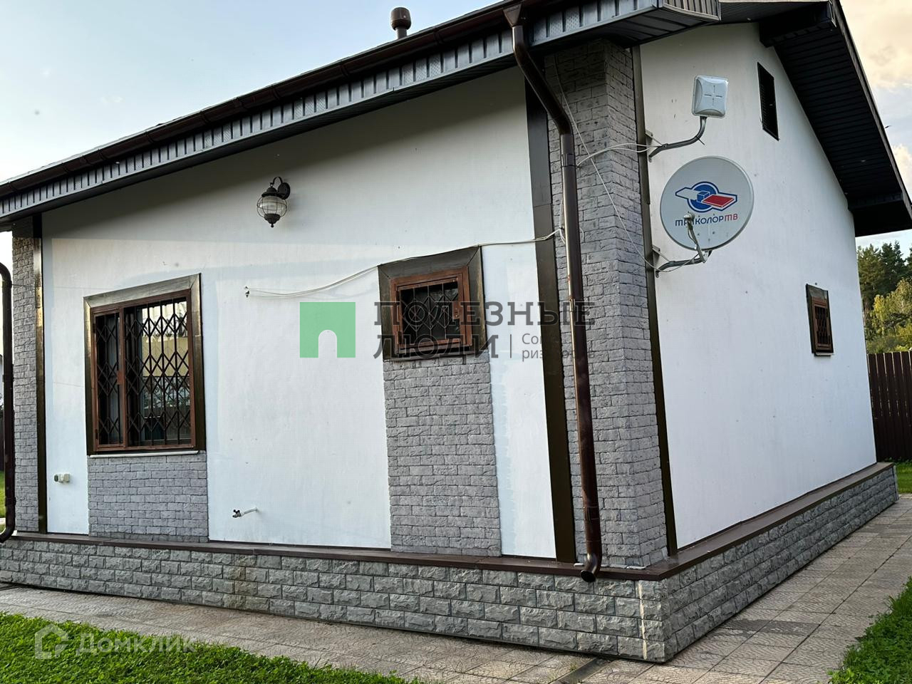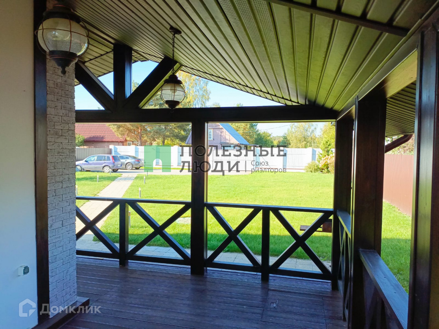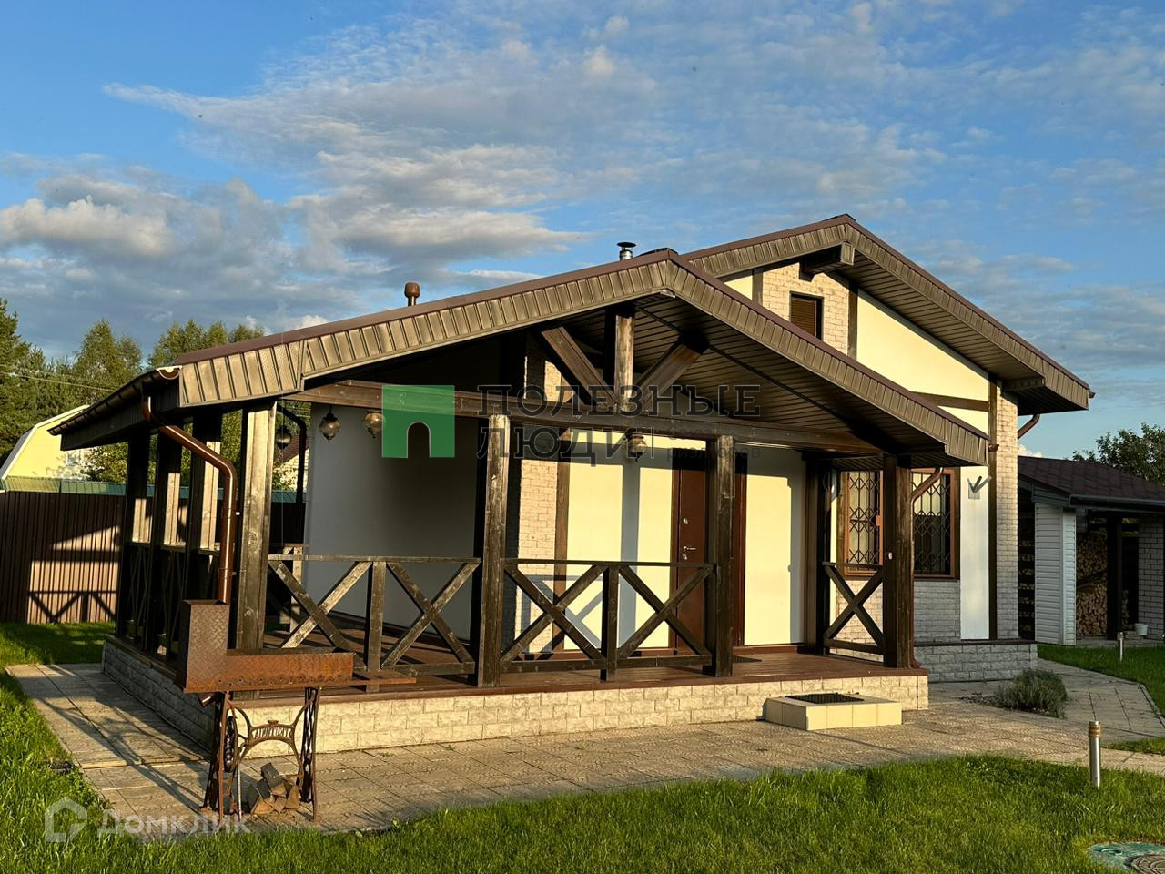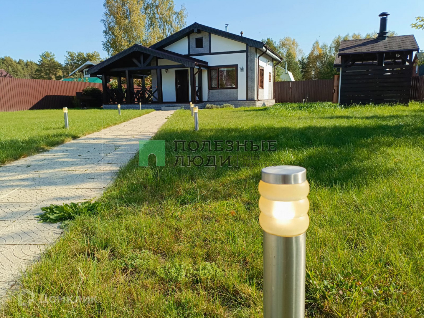 Вечернее освещение участка. Вместительная стоянка для машин.