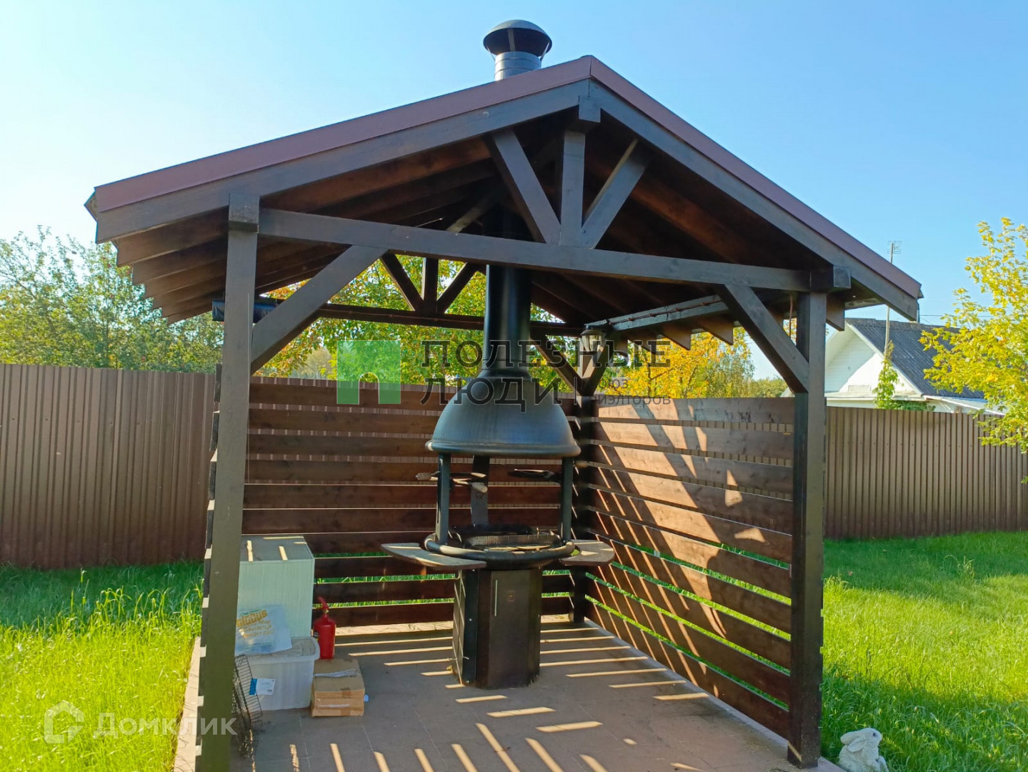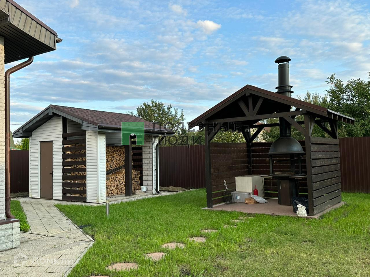 Так же на участке располагается мангальная зона под навесом и дровник с хоз. постройкой.