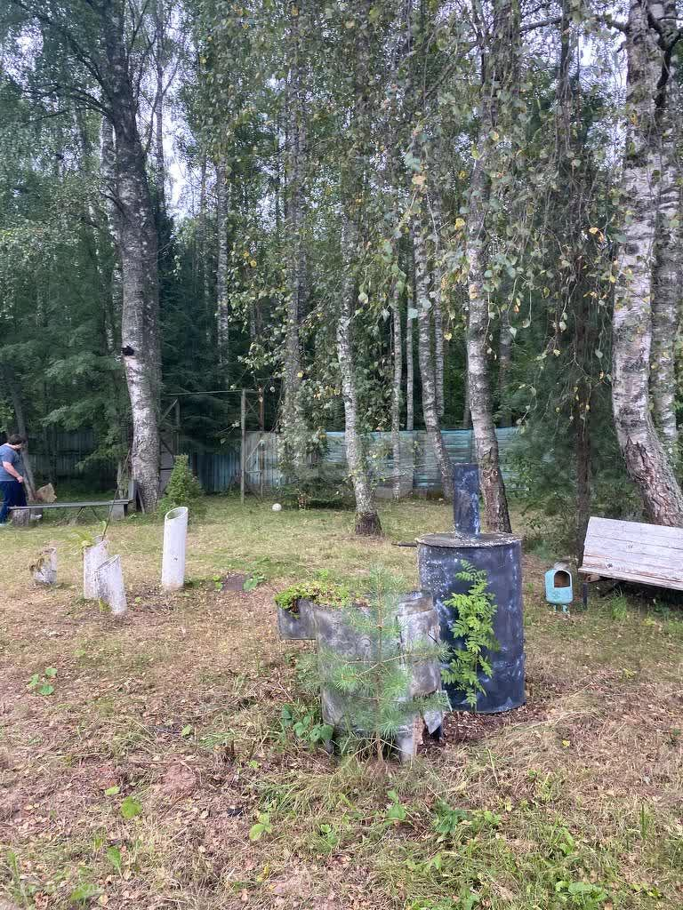 Забор по периметру, со стороны соседей, Бетонный. С другой стороны, участок уходит в лес, что гарантирует вам всегда чистый воздух и еди